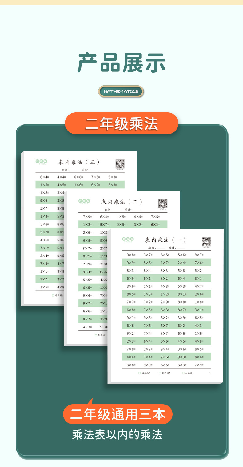 second grade table inner multiplication (3 copies in total)