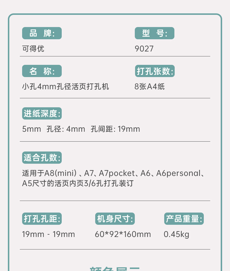 4mm hole puncher can punch 6-hole core a5/a6/a7