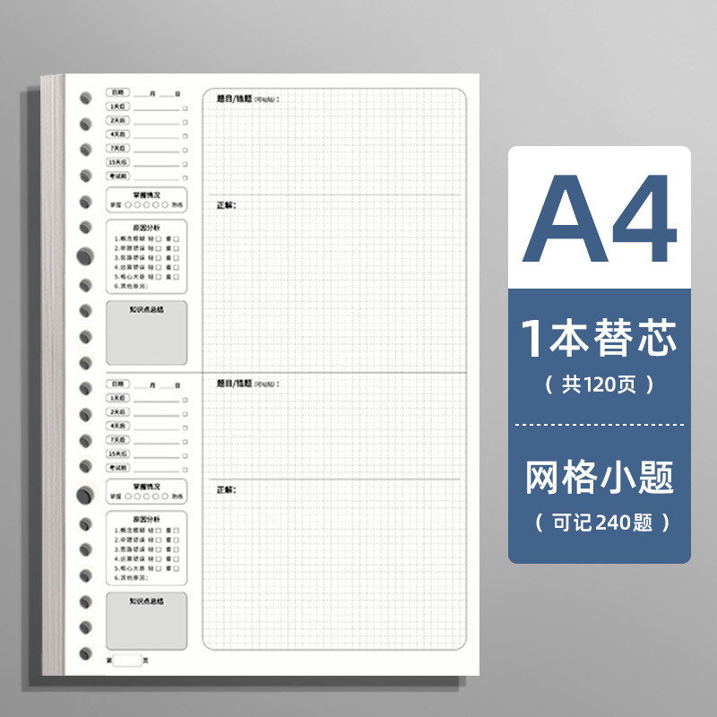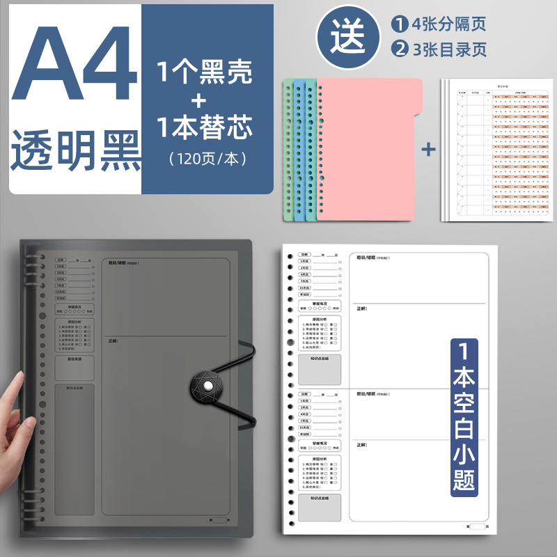 transparent black [a4-problem grid] 1 pack/120 pages in total