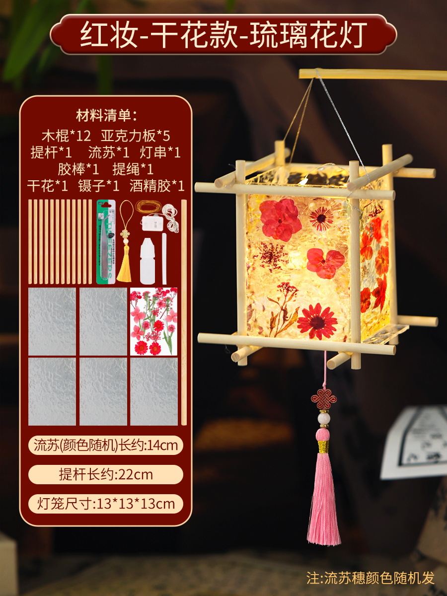 [dried flower red makeup] send dried flower + alcohol glue + tool tweezers