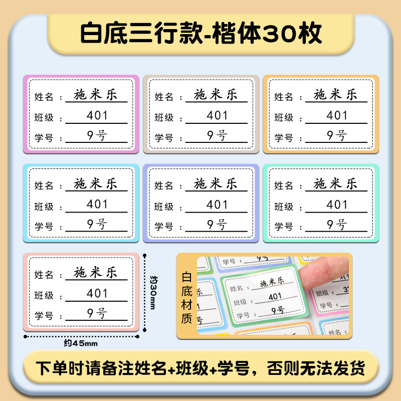class student number-universal for boys and girls-30 pieces (note name)