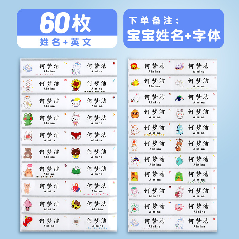 [60 pieces] cartoon transparent name tag + english