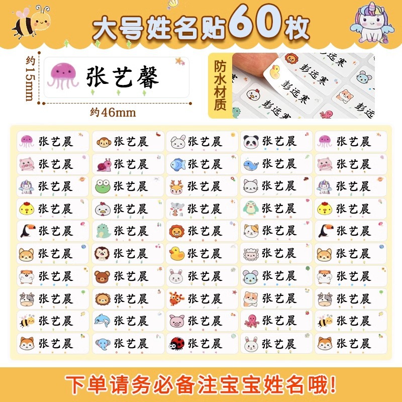 customized waterproof name sticker 32 pieces (comments on content)