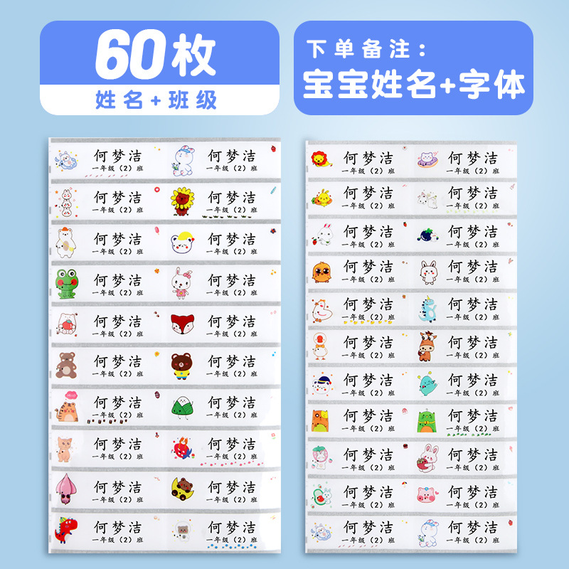 [60 pieces] cartoon transparent name tag + class