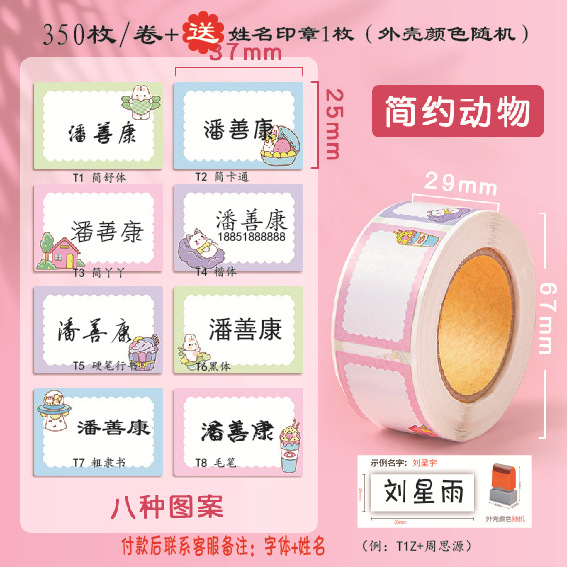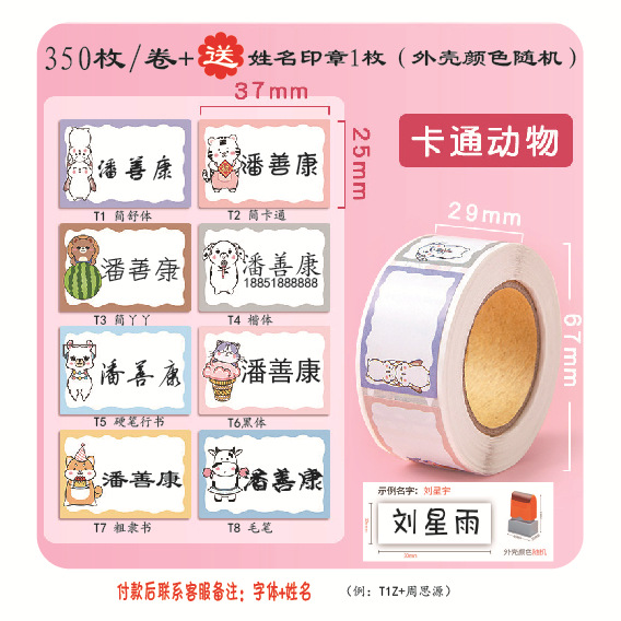 cartoon animals (350 pieces/roll) + seal