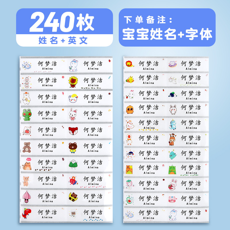 [240 pieces] cartoon transparent name tag + english