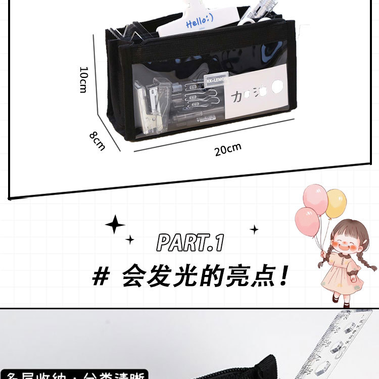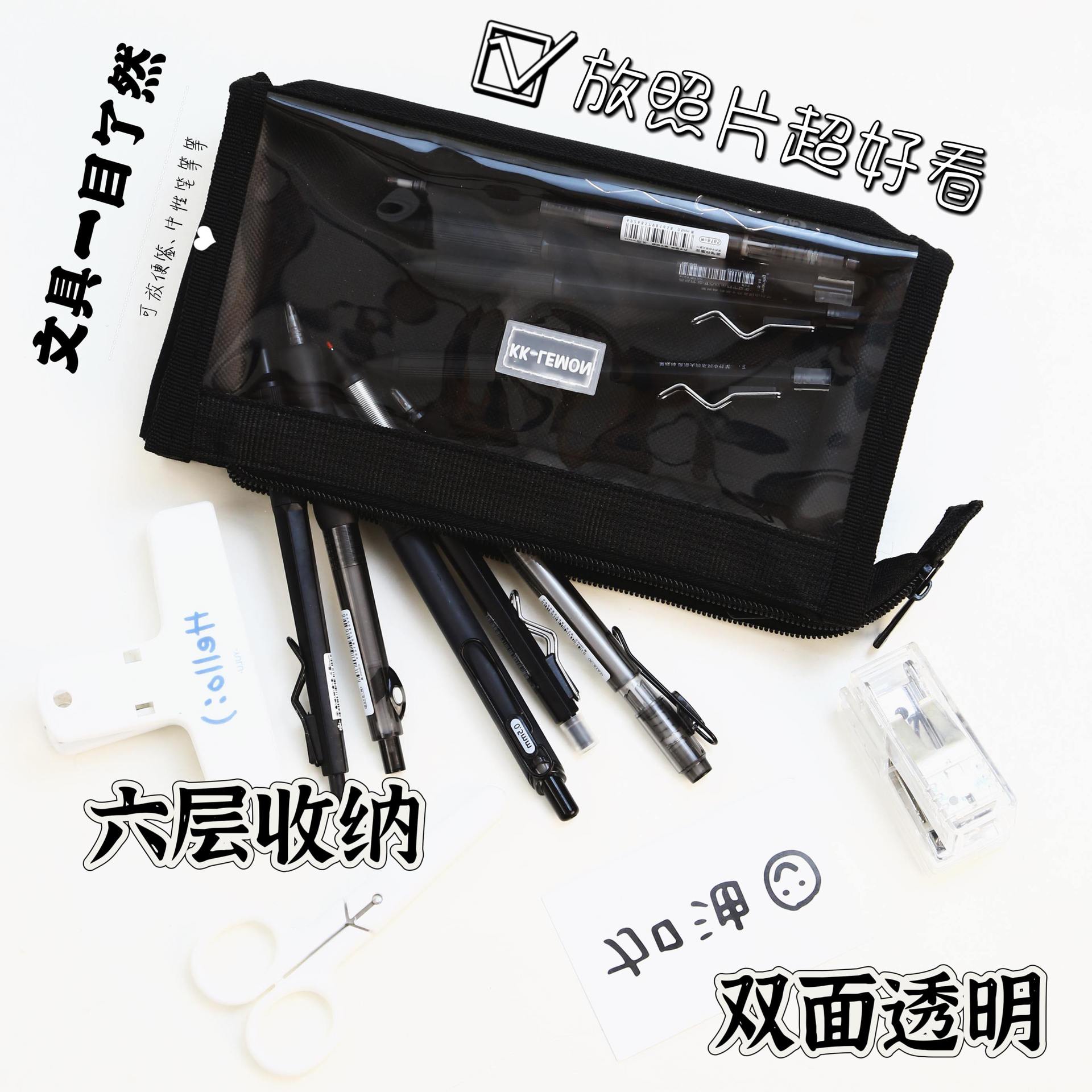 transparent six-layer black + five gel pen