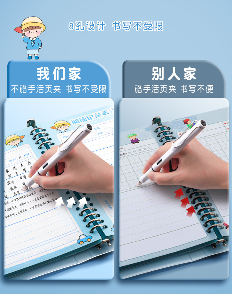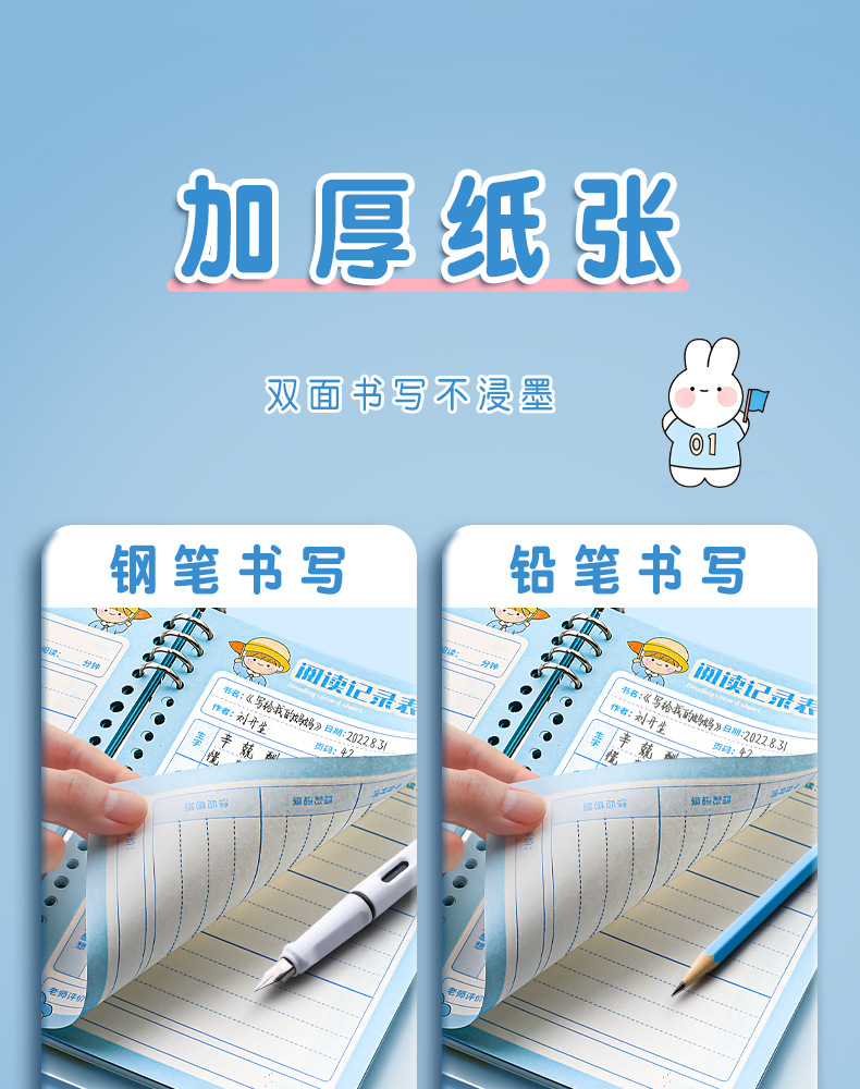 vigorous xiaosen❤horizontal line-100 pages blue + plastic loose-leaf ring