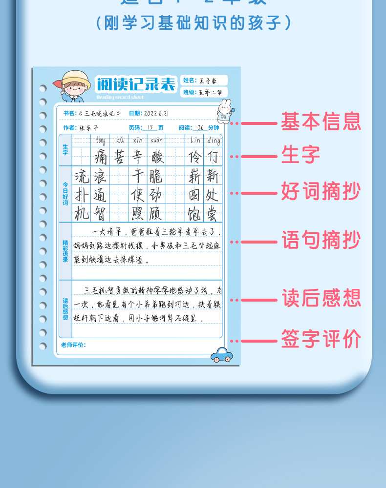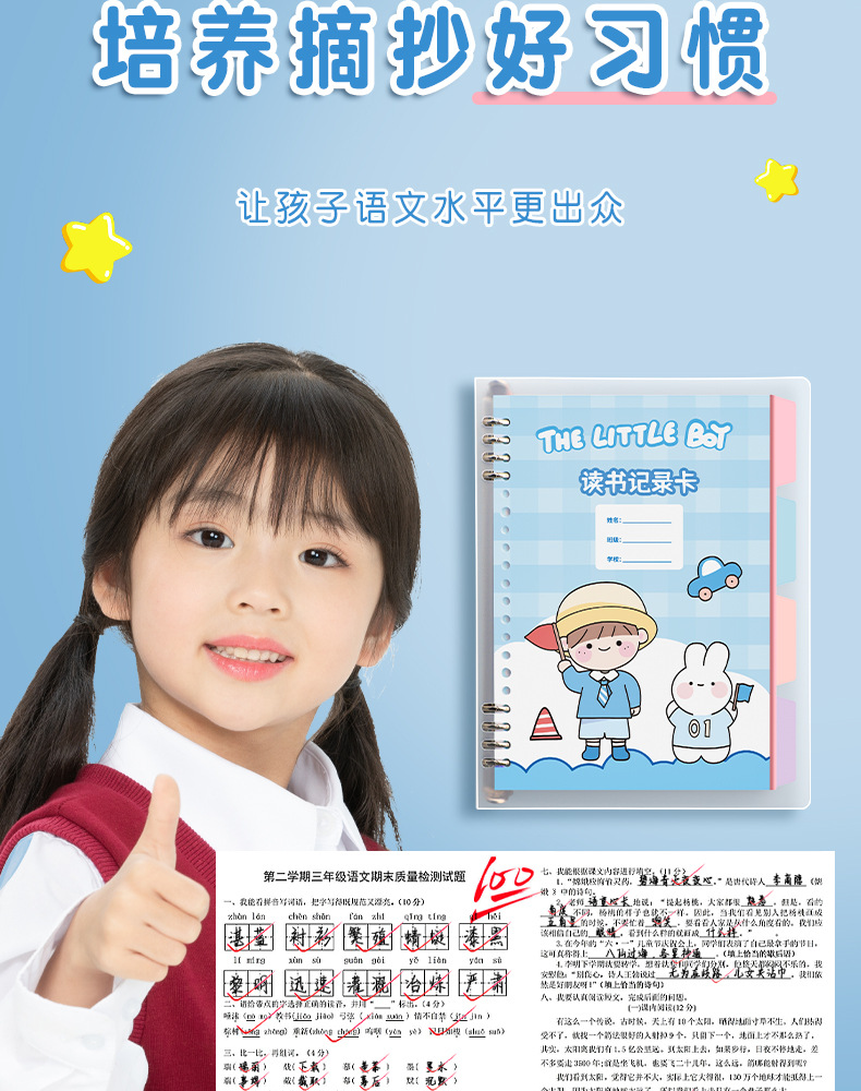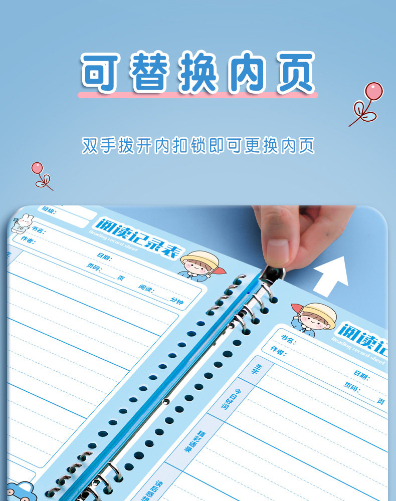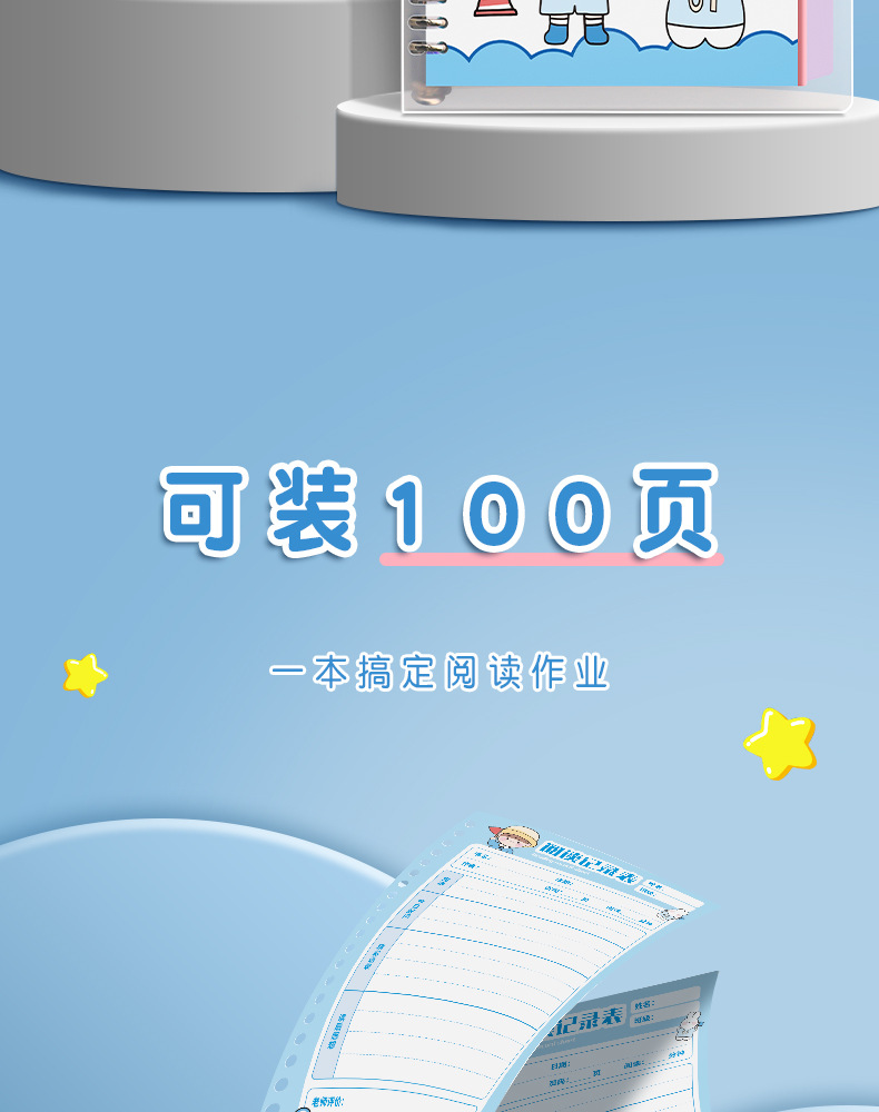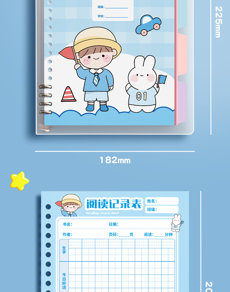 vigorous xiaosen❤tian zi-100 pages blue + plastic loose-leaf ring