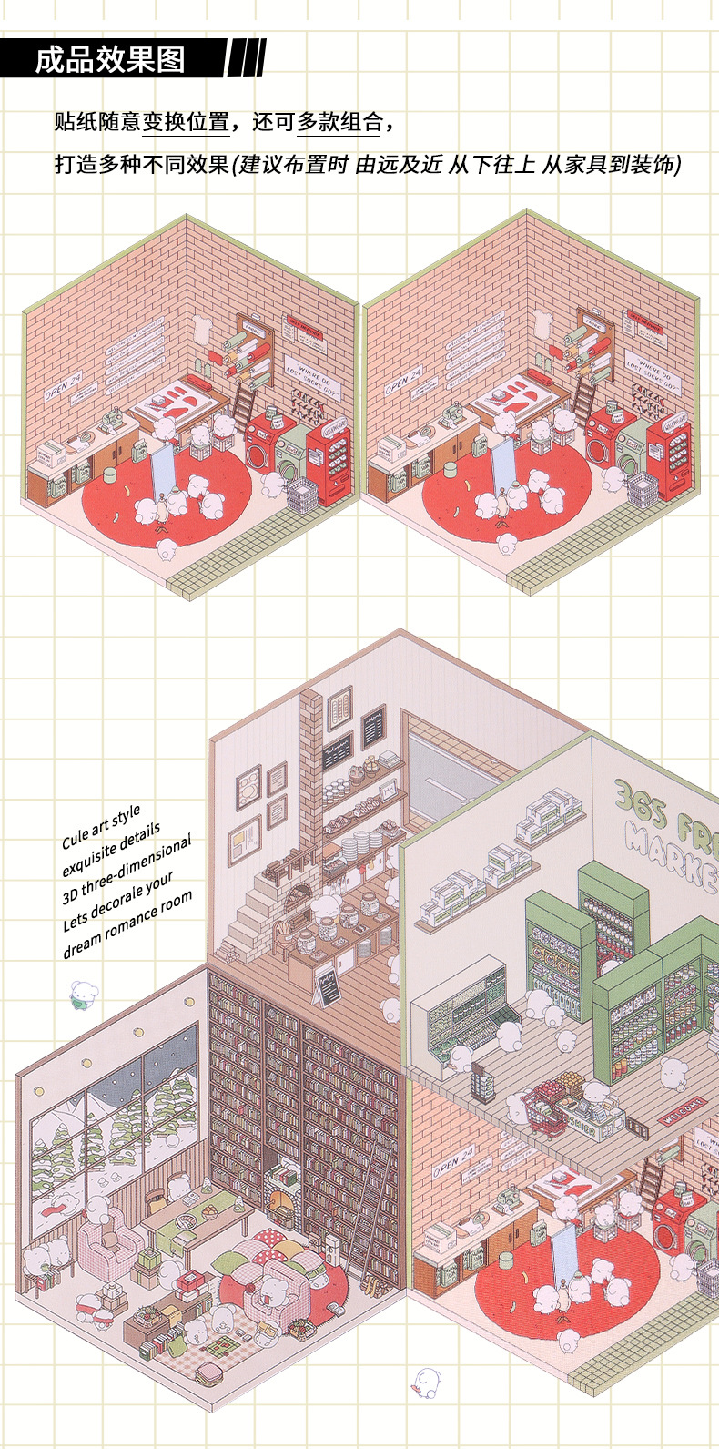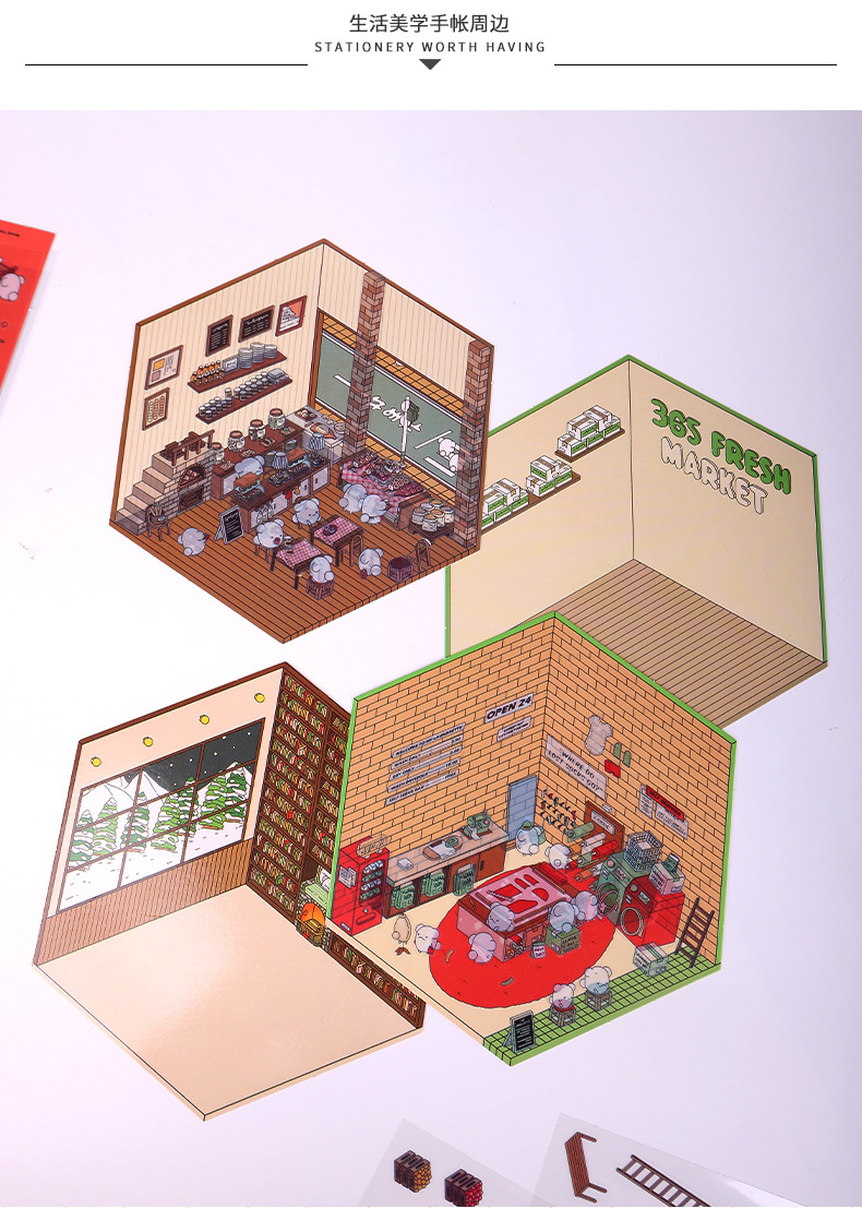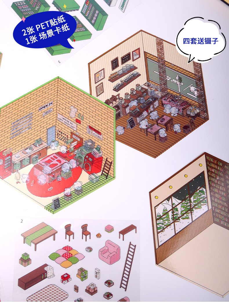 diy bookstore 3d cottage + bookstore character stickers