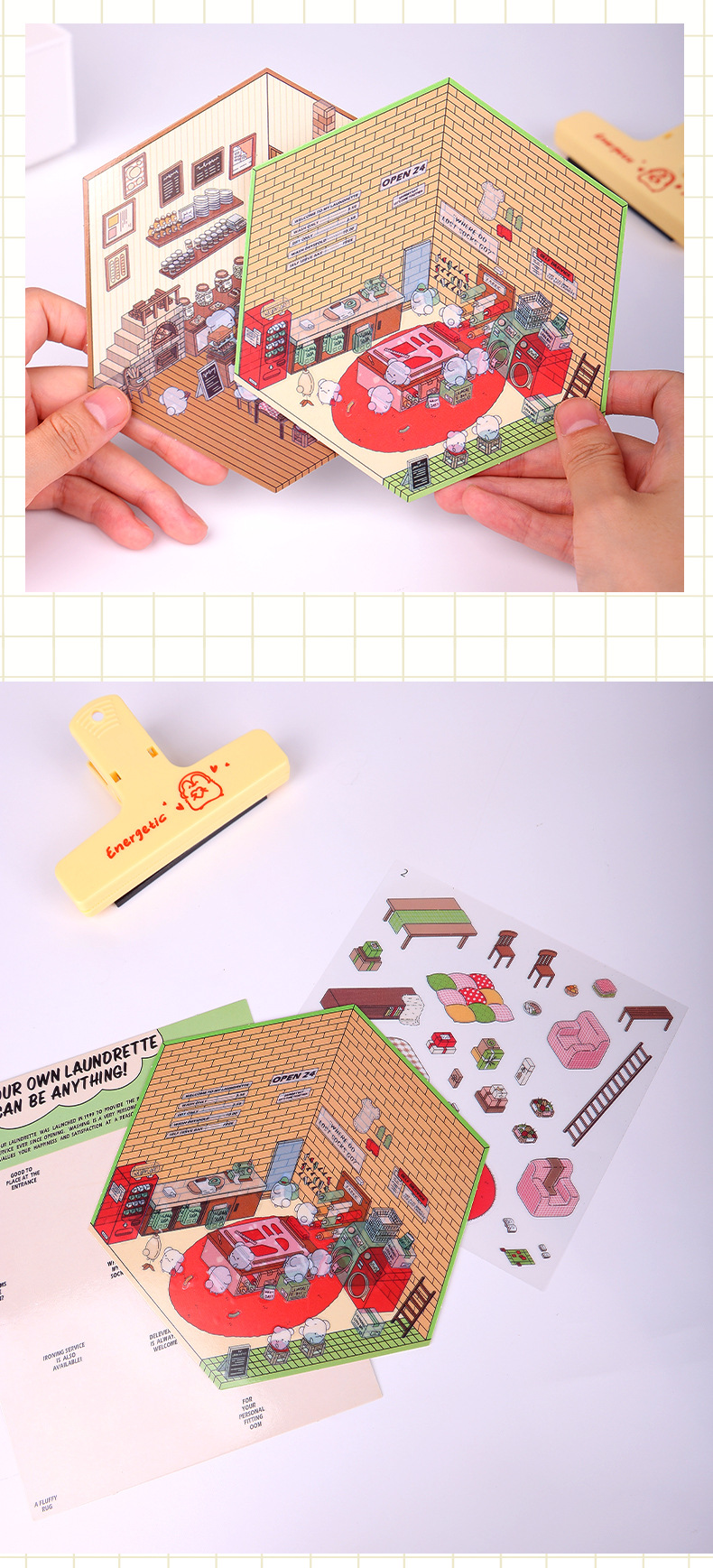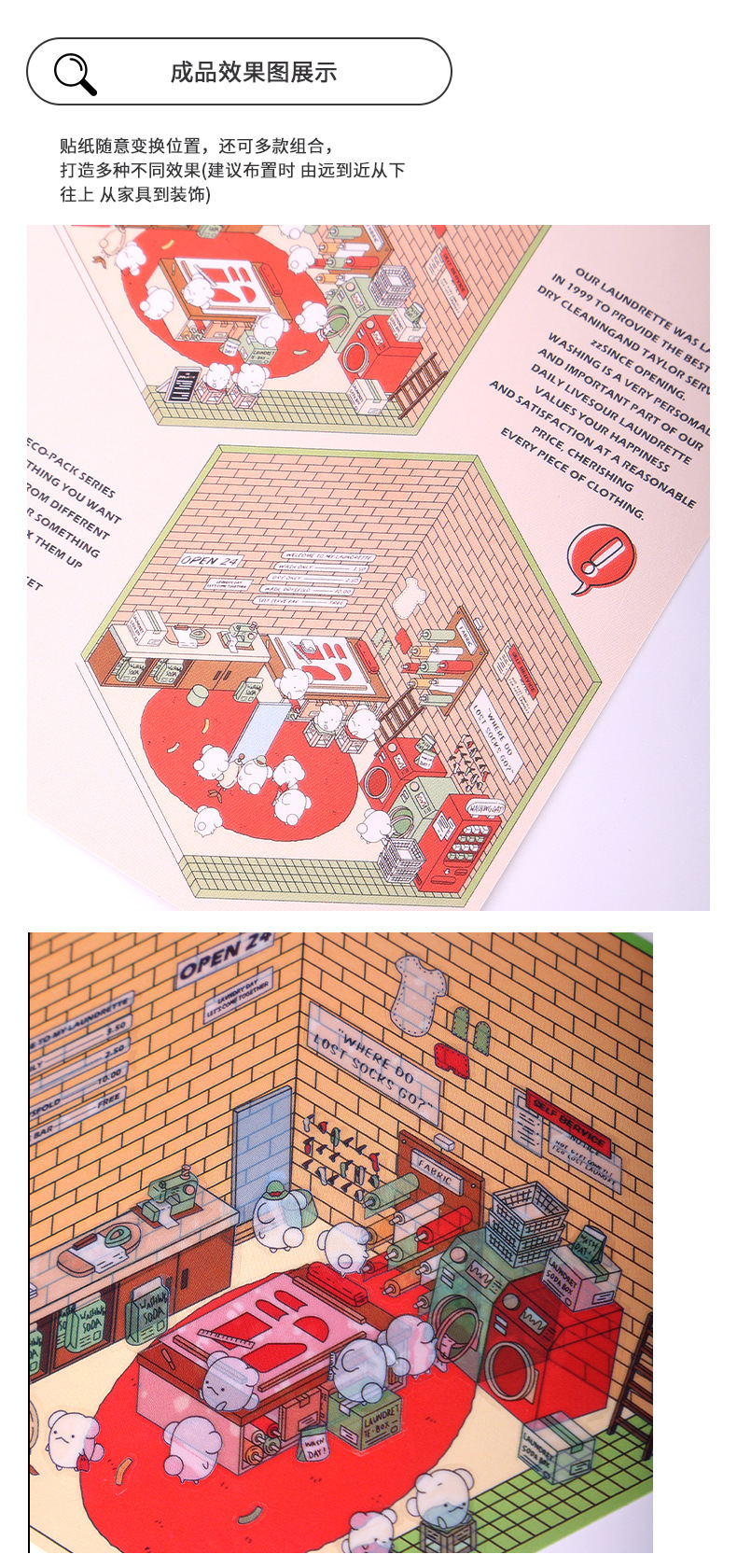 diy laundry 3d cabin + laundry character stickers
