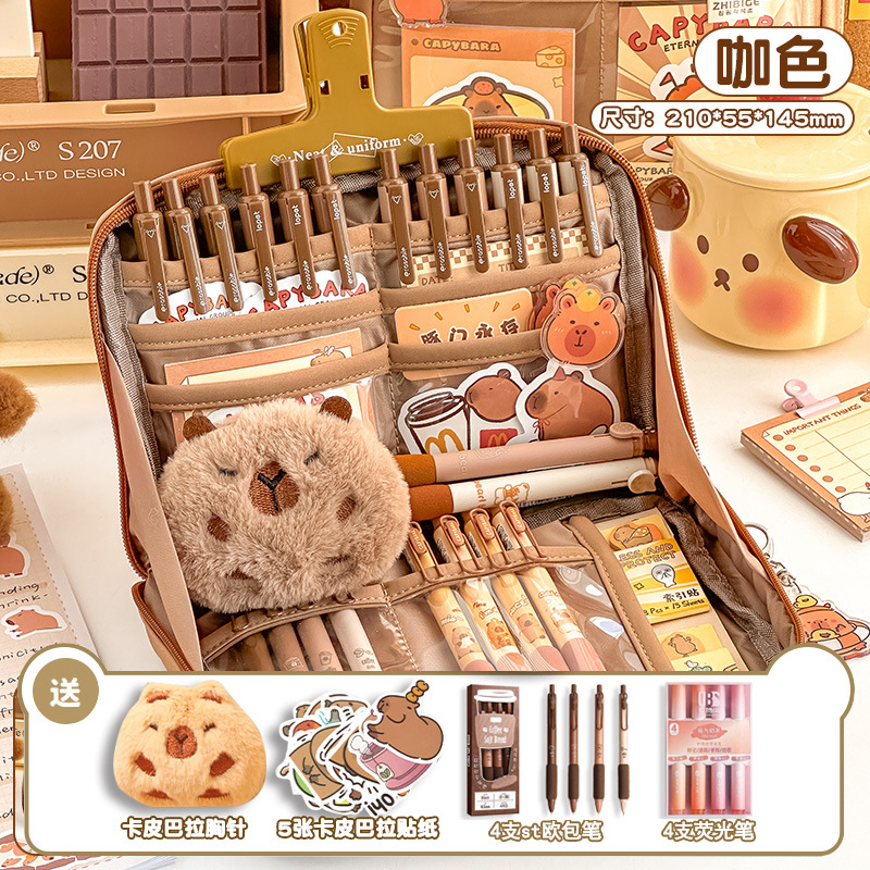 [panda suit] brown attached brooch as a gift + stickers + european bag pen + fluorescent pen
