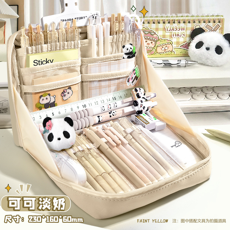[panda suit] beige attached brooch as a gift + stickers + european bag pen + fluorescent pen