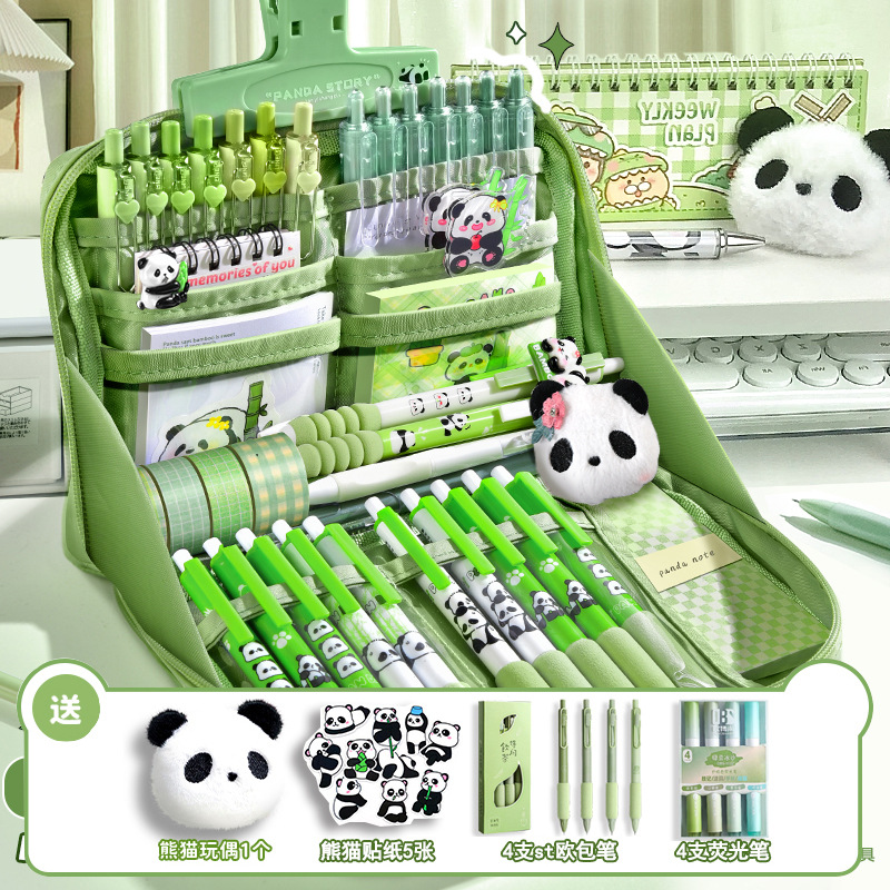 [panda suit] green attached brooch as a gift + stickers + european bag pen + fluorescent pen