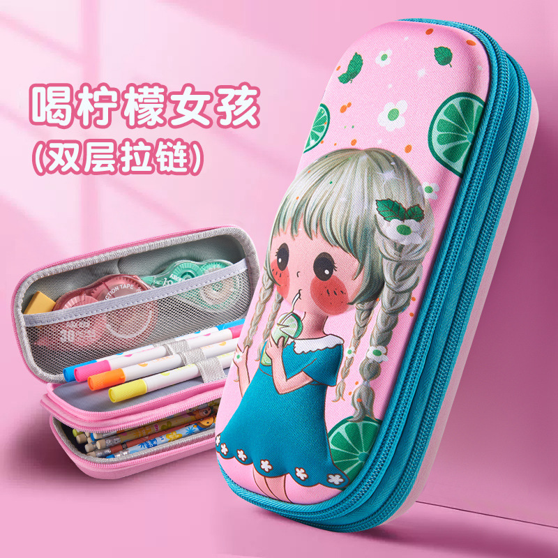 [drink lemon girl] double zipper/3d large capacity