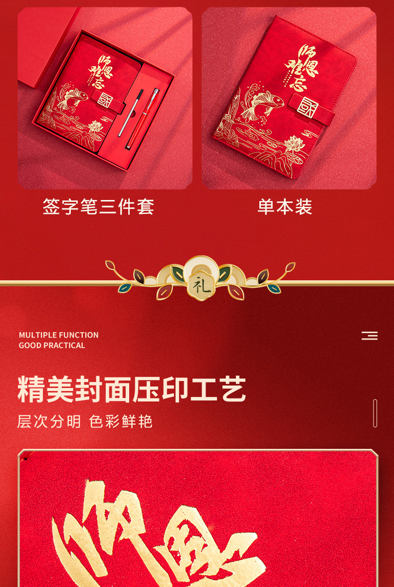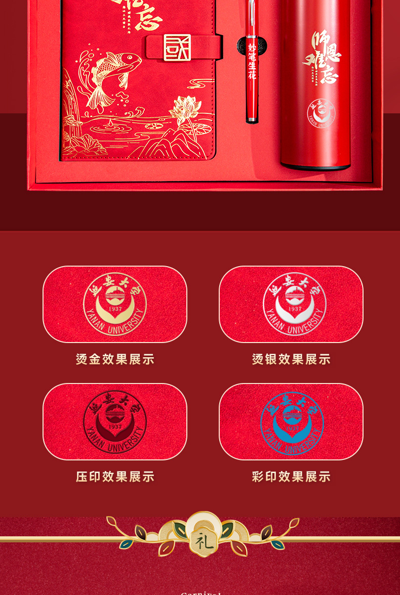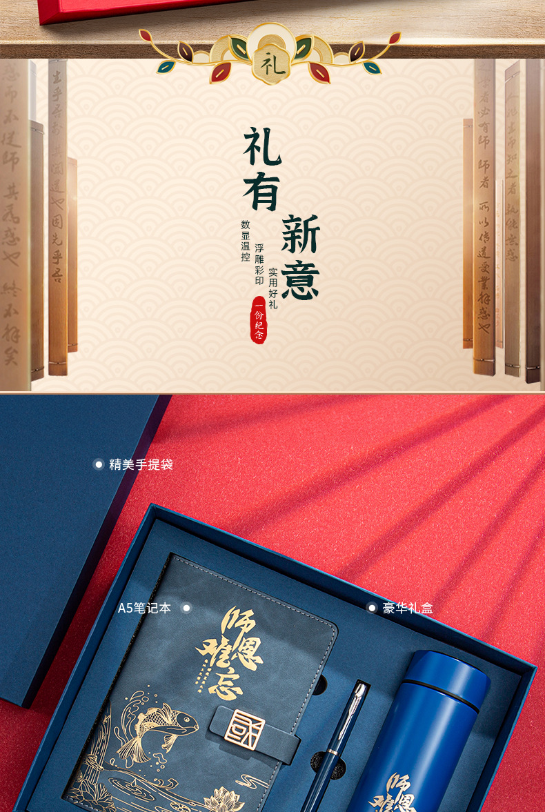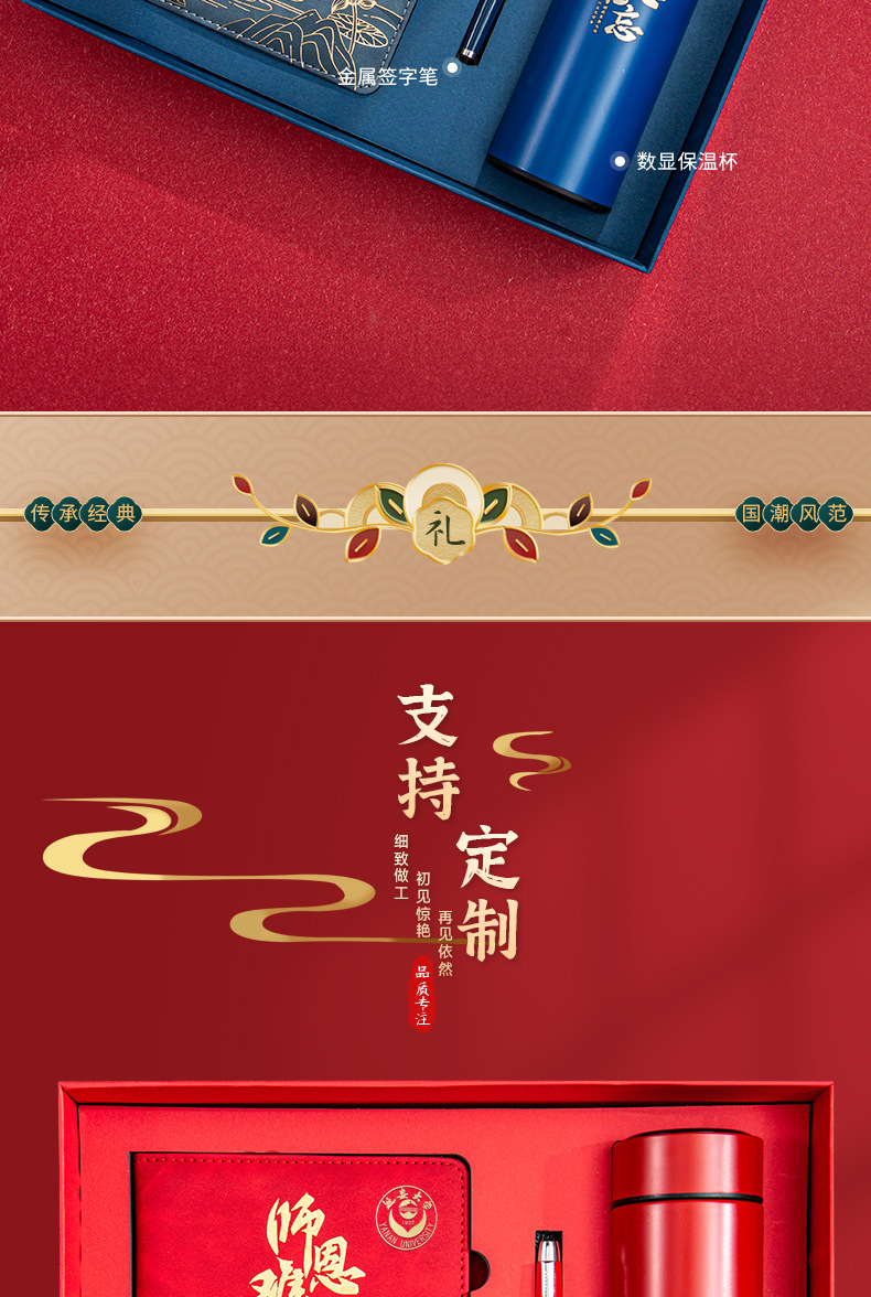 chinese red [three-piece thermos cup] (send random color greeting cards)