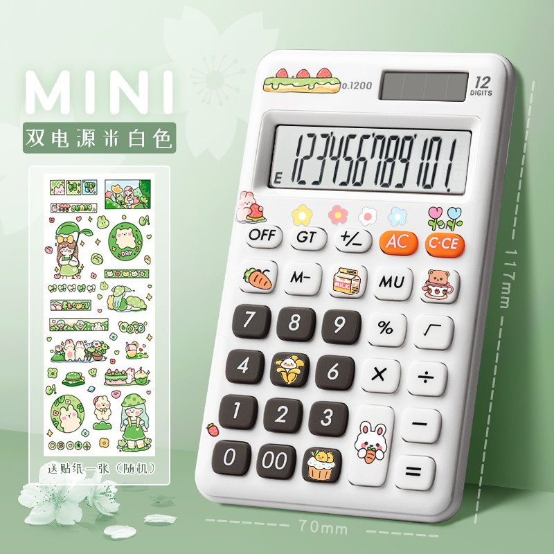 [portable dual-power 12-digit display with stickers] light blue