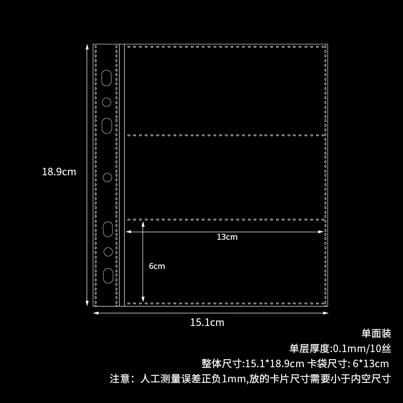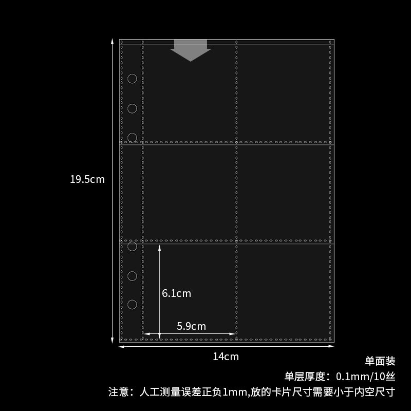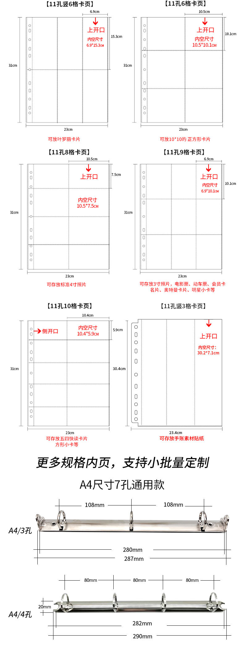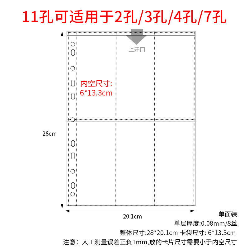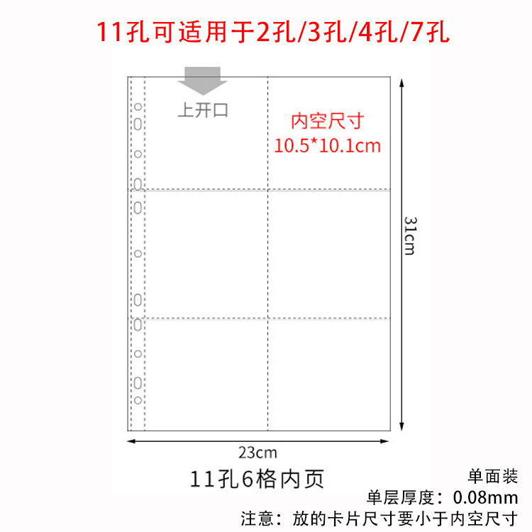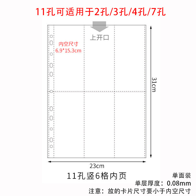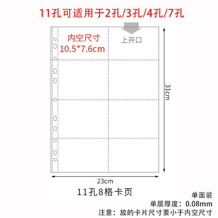 small a4 11-hole vertical 6-grid card page 10 pieces