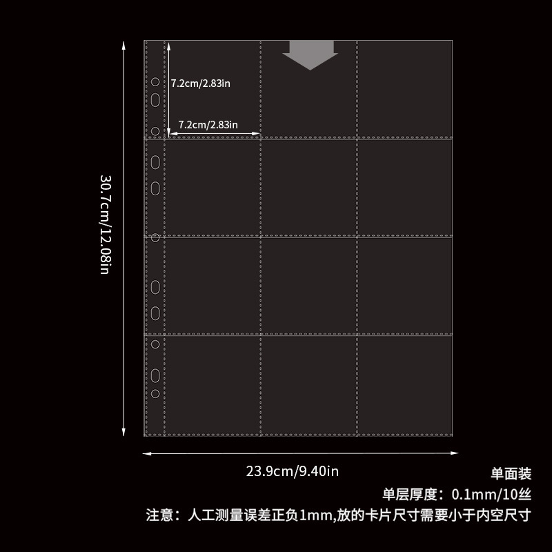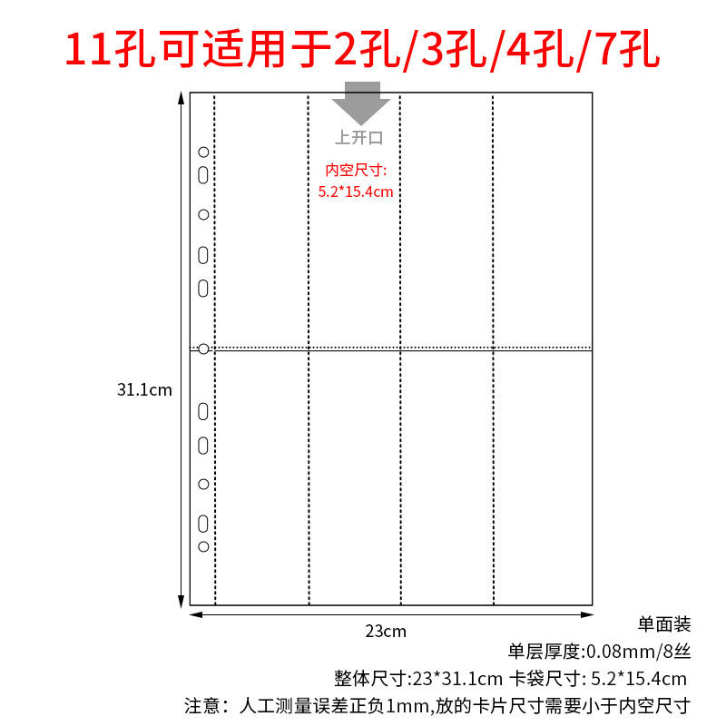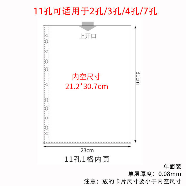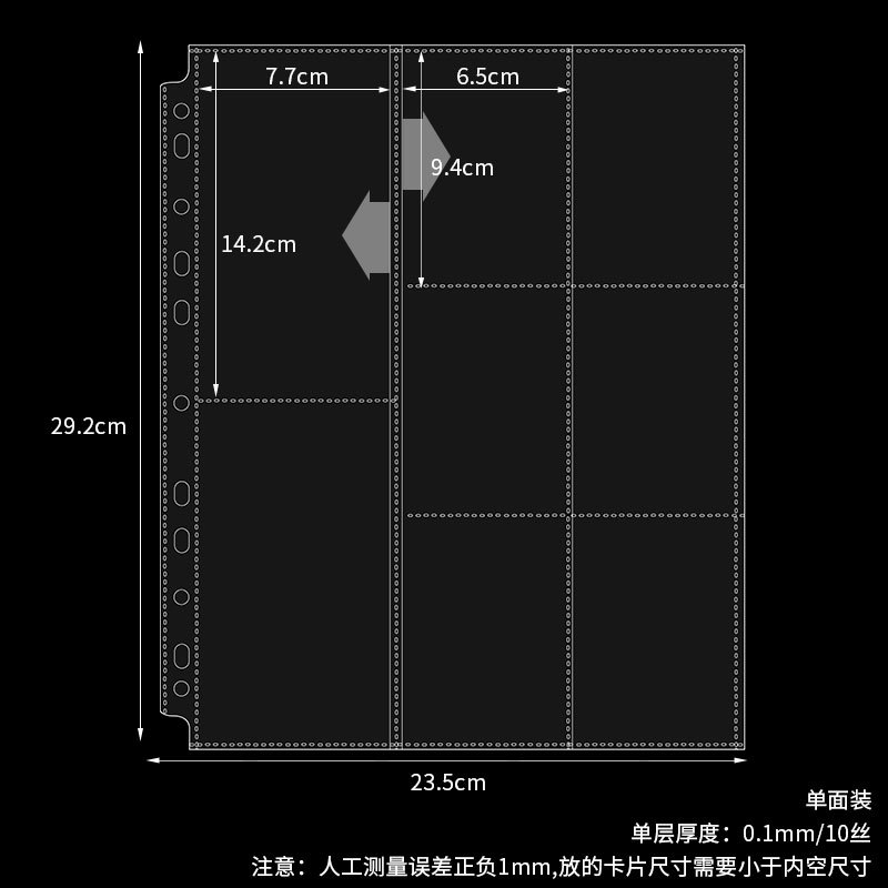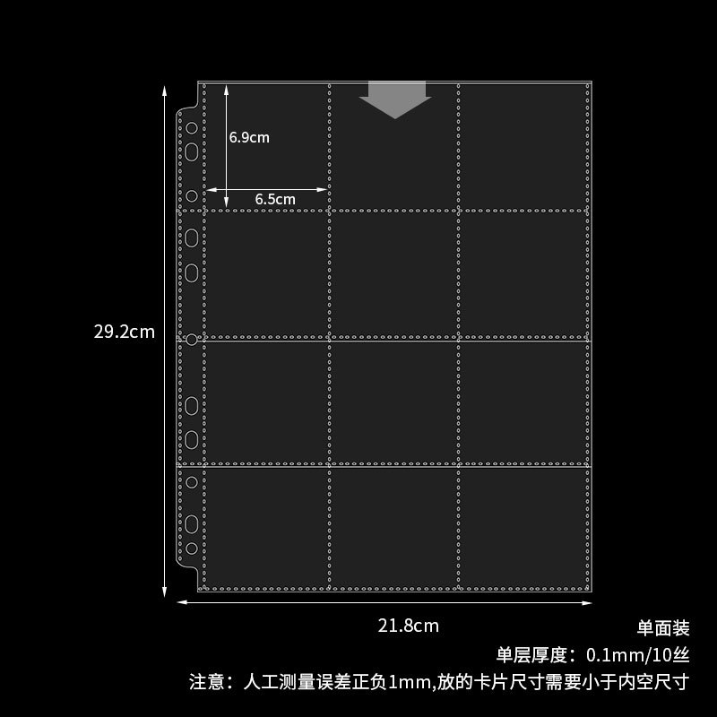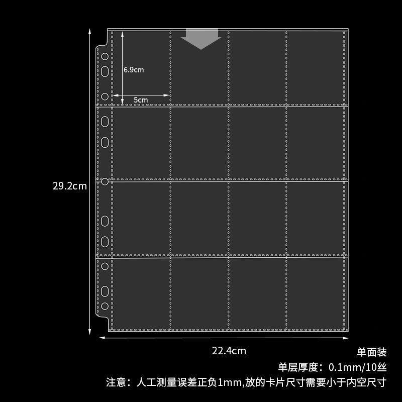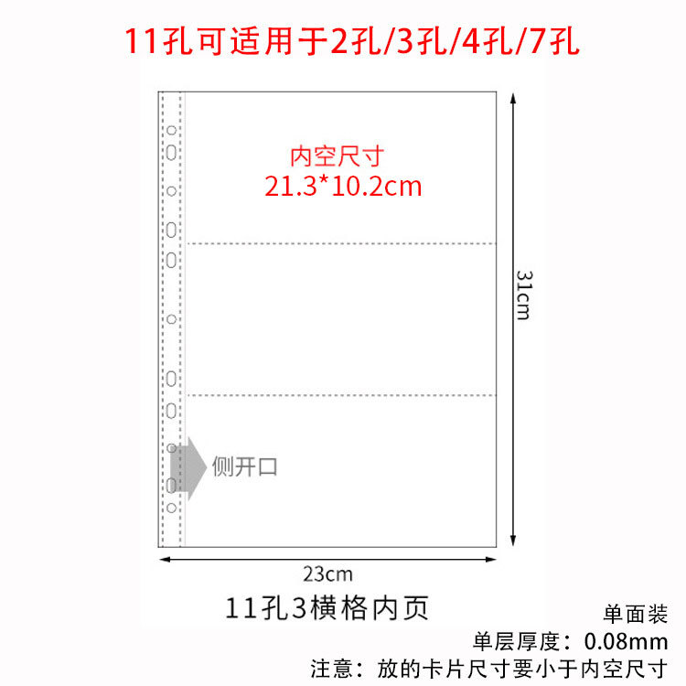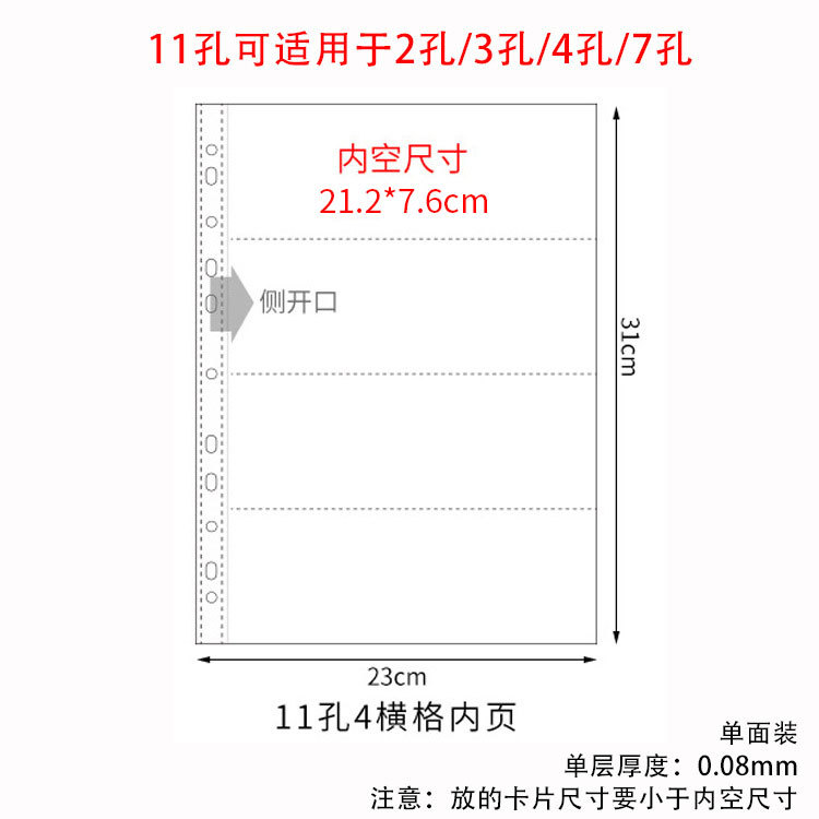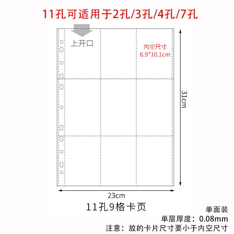 small a4 11-hole 9-grid card page single-sided pack 10 pieces