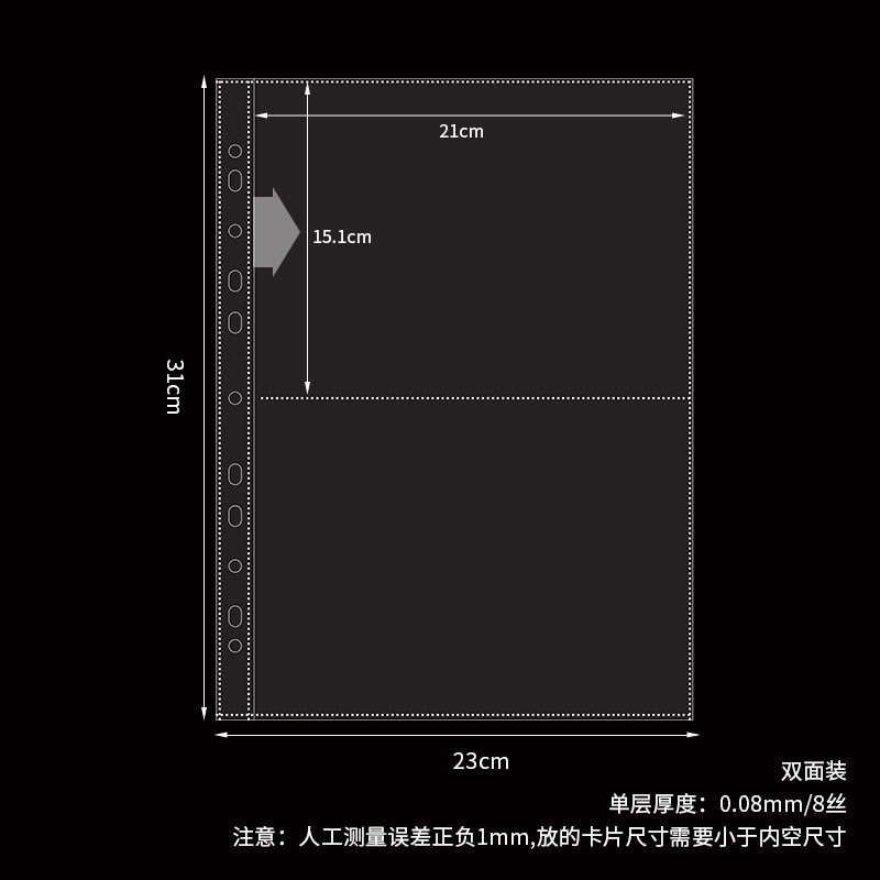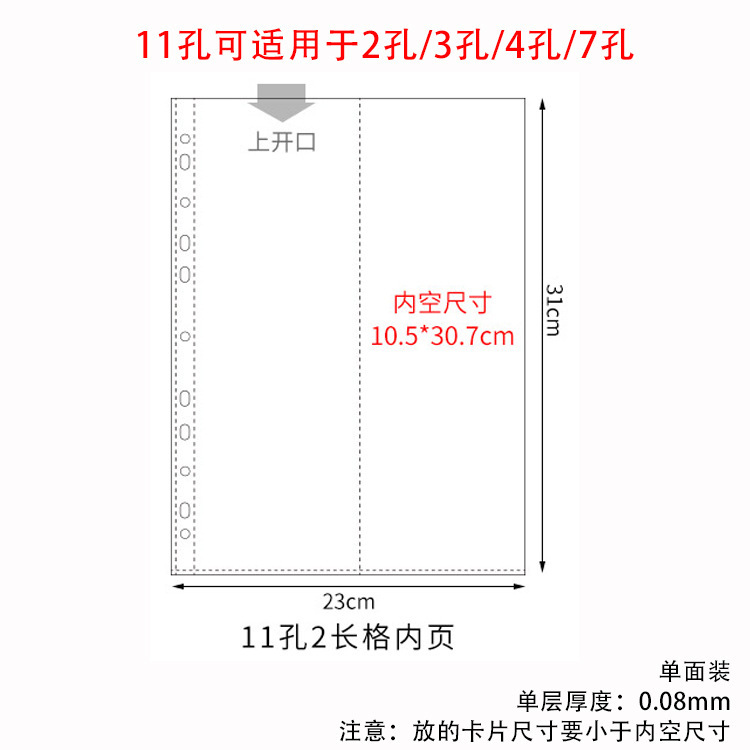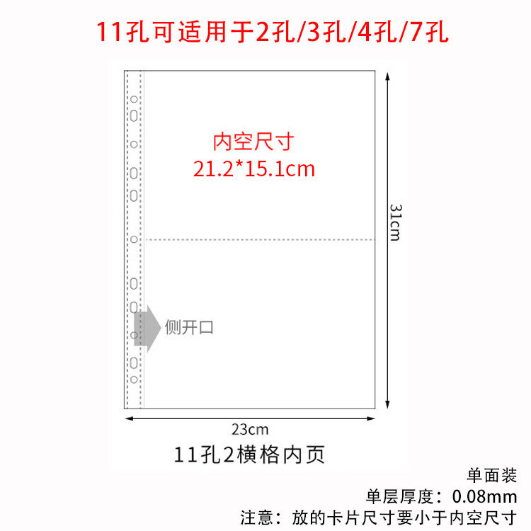 a4 11-hole horizontal 2-grid card page single-sided pack 10 pieces