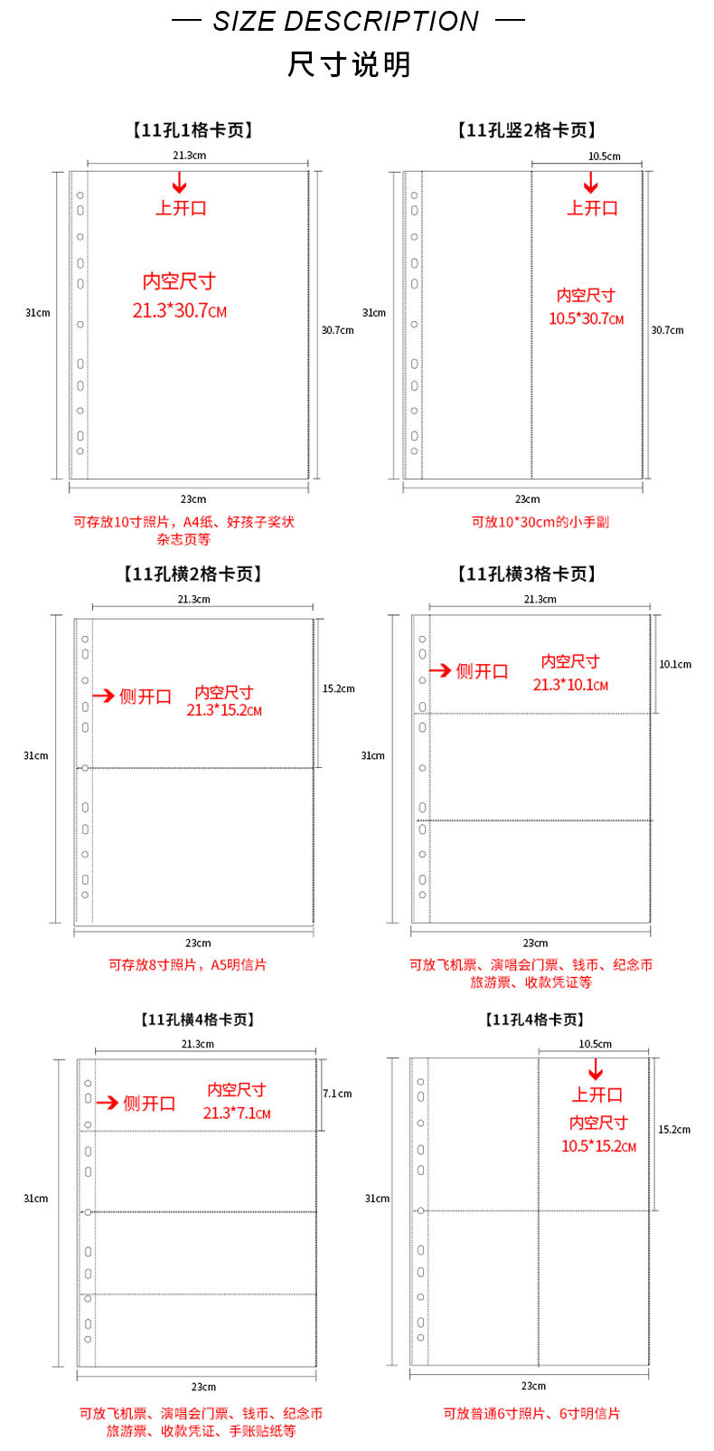 large a4 11-hole vertical 6-grid card page 10 pieces