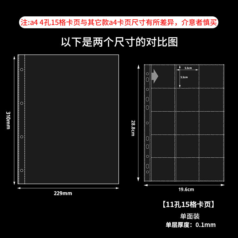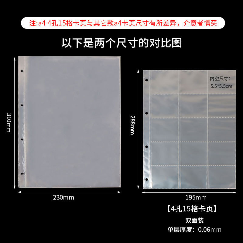 a4 11-hole 15-grid card page single-sided pack 10 pieces