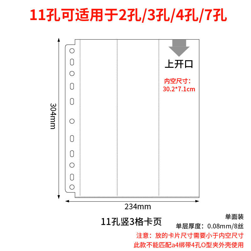 a4 11-hole vertical 3-grid card page 10 pieces