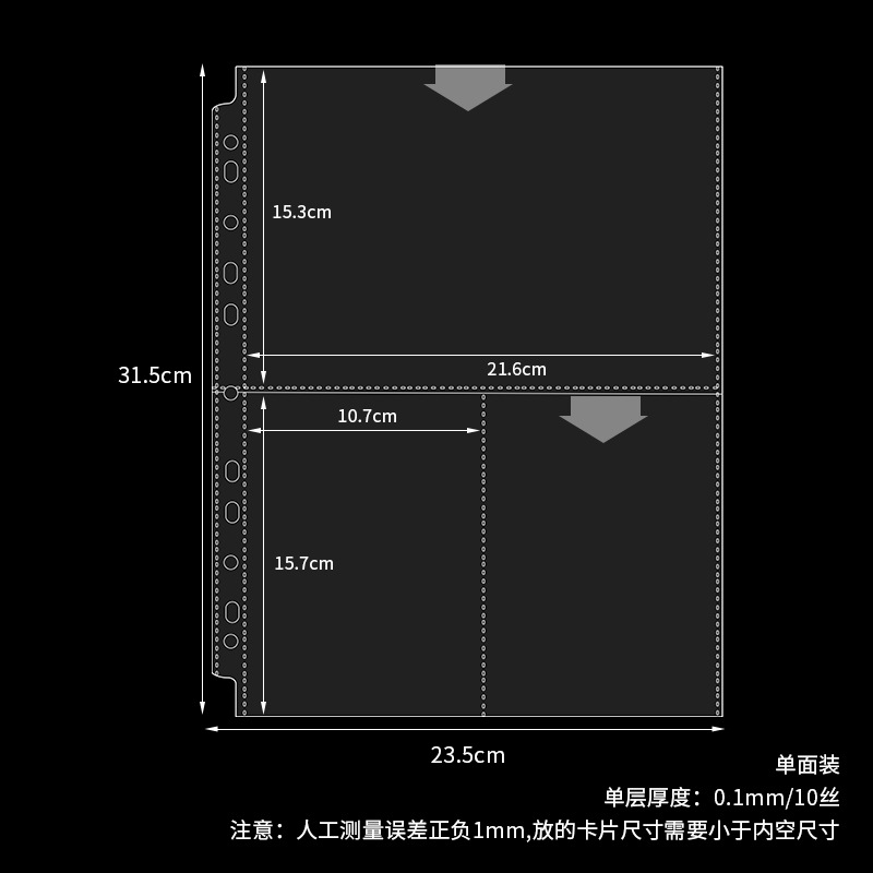 a4 11-hole horizontal 2-grid card page, 10 pieces on both sides