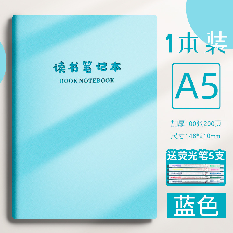 reading notebook-a5 blue +5 pcs fluorescent pen