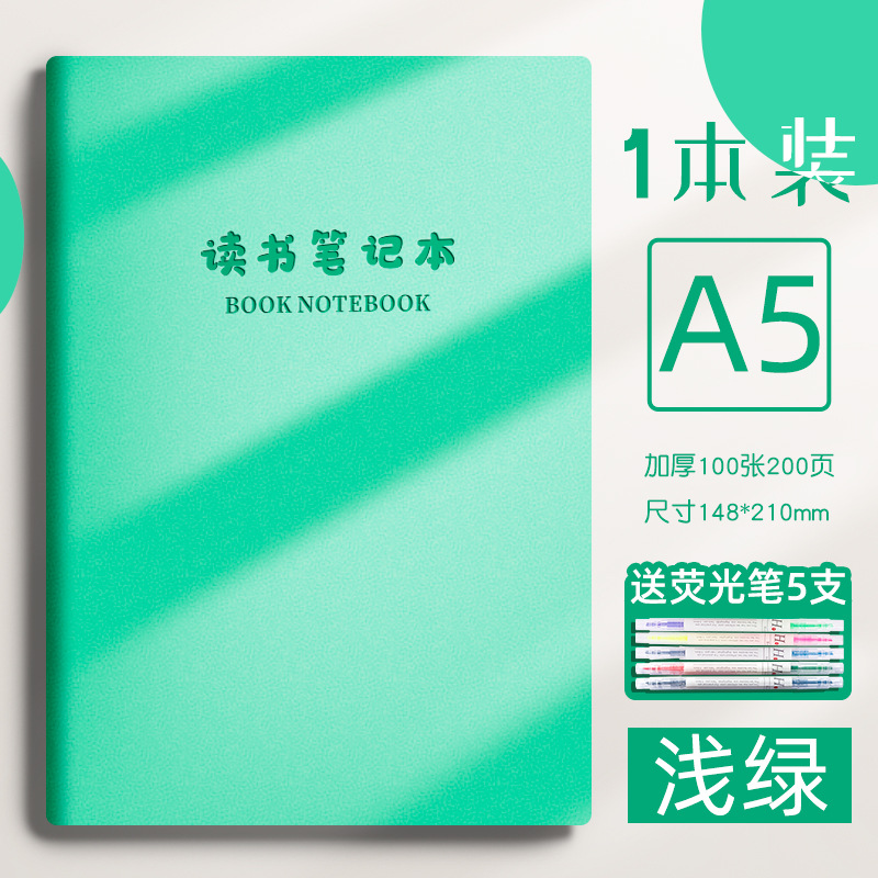 reading notebook-a5 light green +5 pcs fluorescent pen