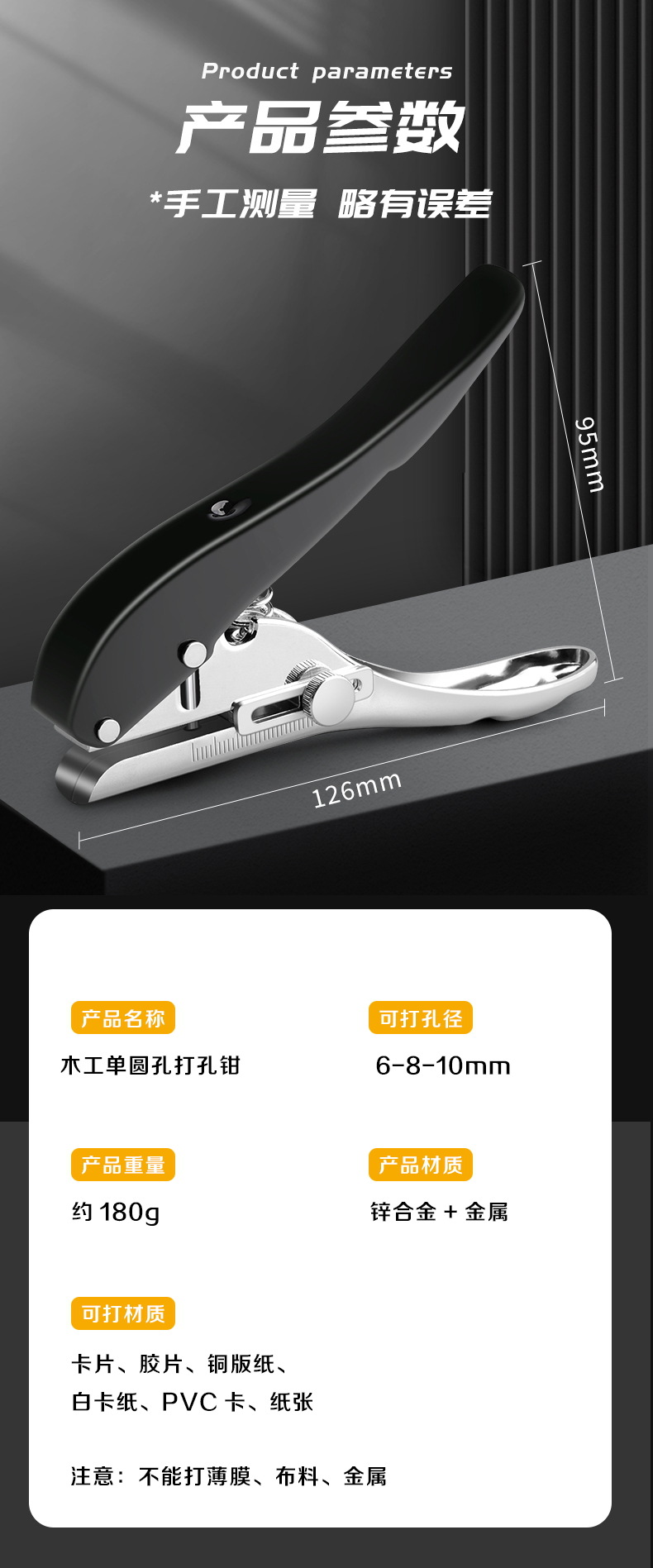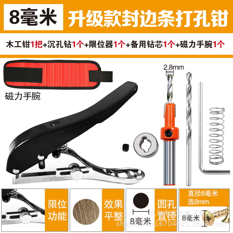 woodworking pliers black 8mm + heavy drill + stopper + iron suction wrist