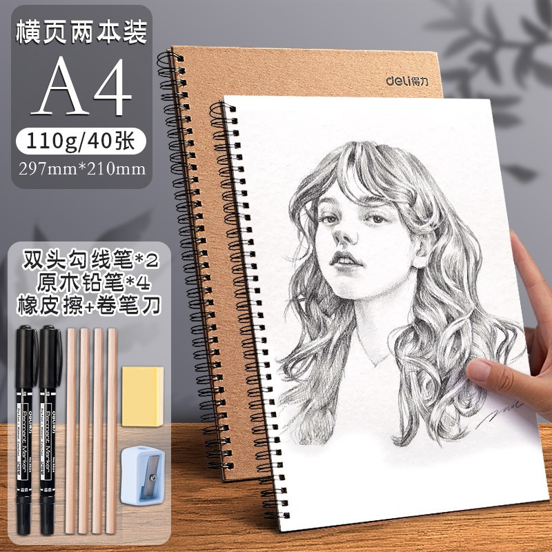 [2 hard shell models] a4 sketch/vertical page turning/110g/80 sheets-send 8-piece set