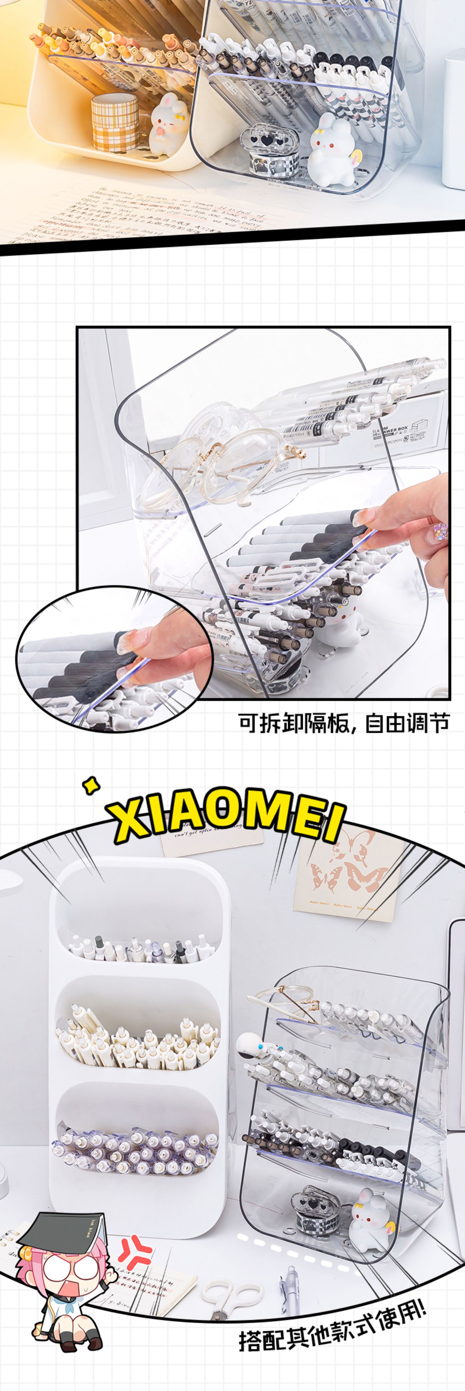 3 layers +4 layers separated pen container-transparent