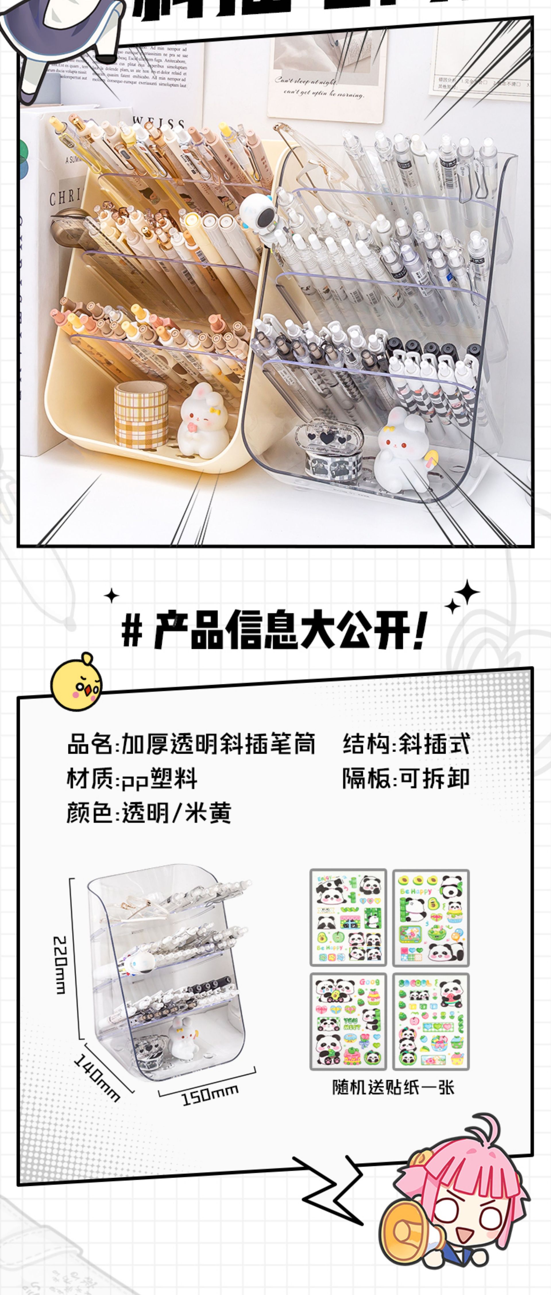 4-layer separated pen container-transparent small-send panda stickers