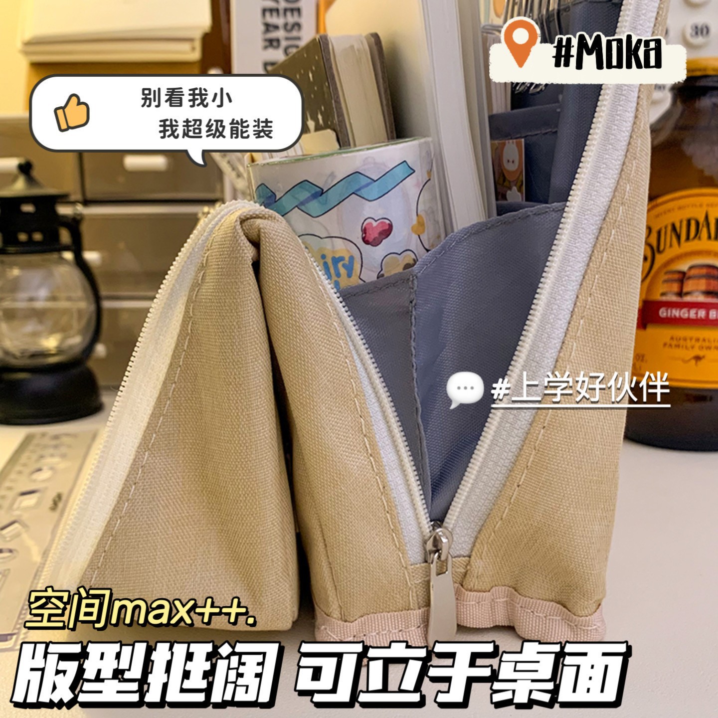 oversized pencil case large capacity/beige