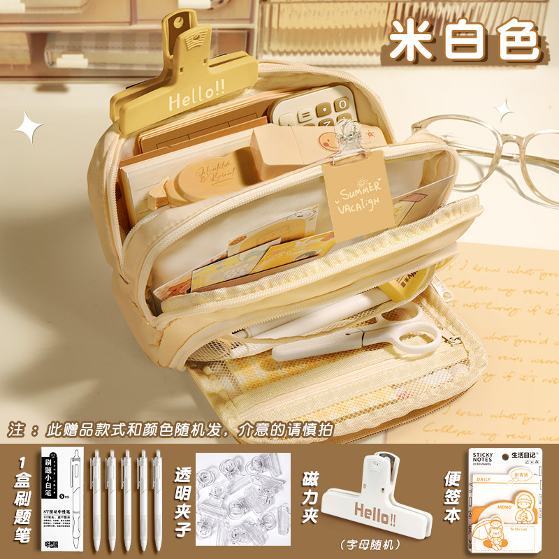 [combination] creamy-white/get 1 box of brush pen + random note + magnetic clip +5 transparent