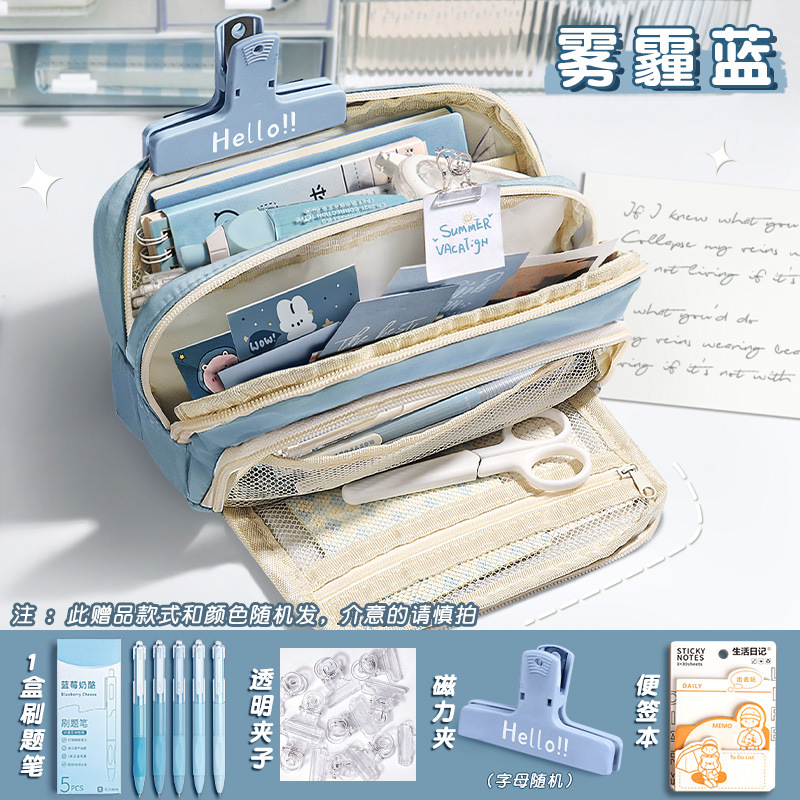 [combination] haze blue/get 1 box of brush pen + random note + magnetic clip +5 transparent