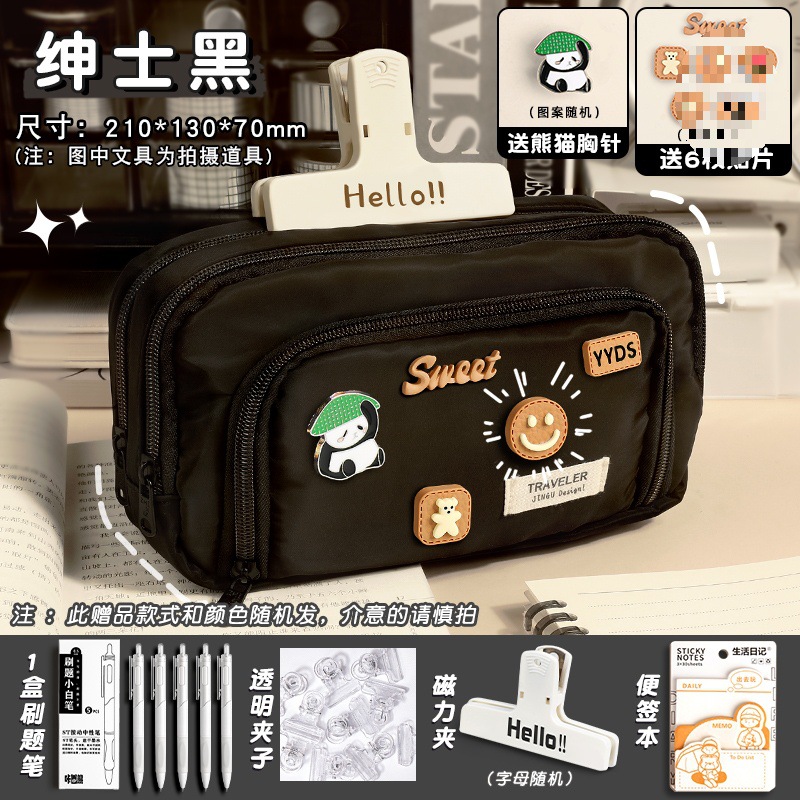 [as main image/upgrade thickening] gentleman's black/get 1 box of brush pen + panda brooch + stickers