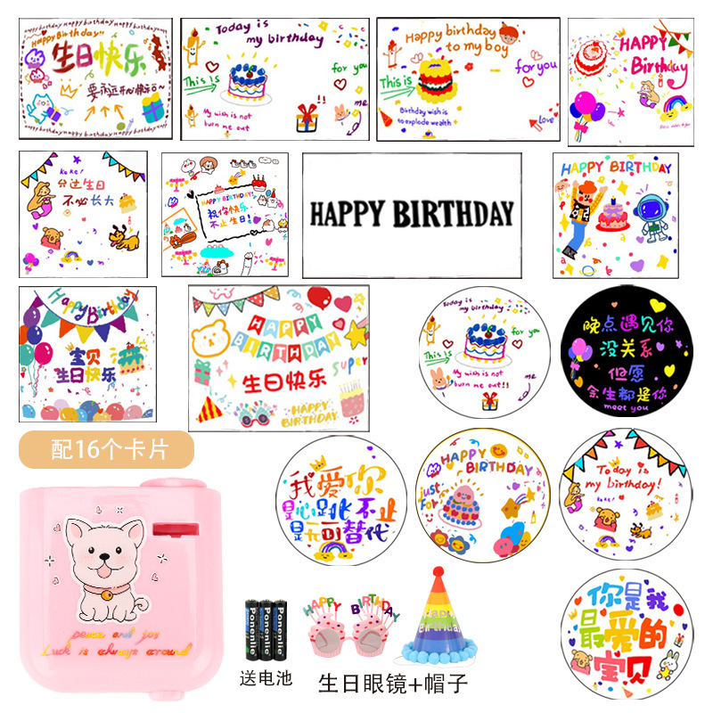 pink projector-22 card [14 landscape projection +8 square] + hat glasses