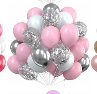 12-inch agate pink 5 + rose gold sequins 5 + rose red 5 + pink 10 + white 5 + ribbon roll