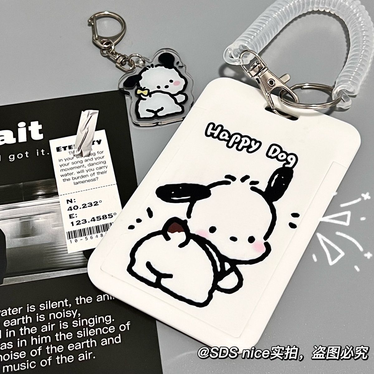 kitty cat card holder + white leather rope