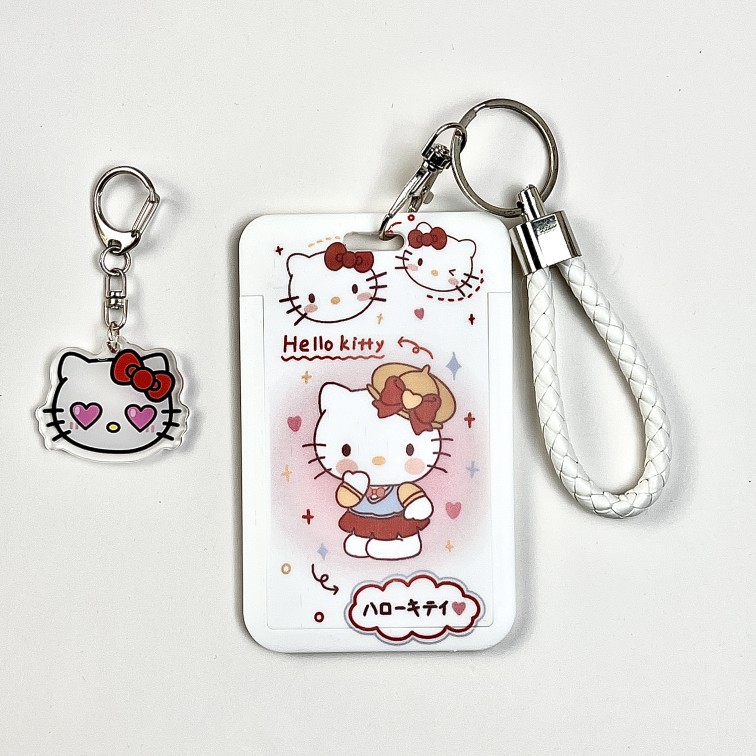 kitty cat card holder + leather rope + kitty pendant