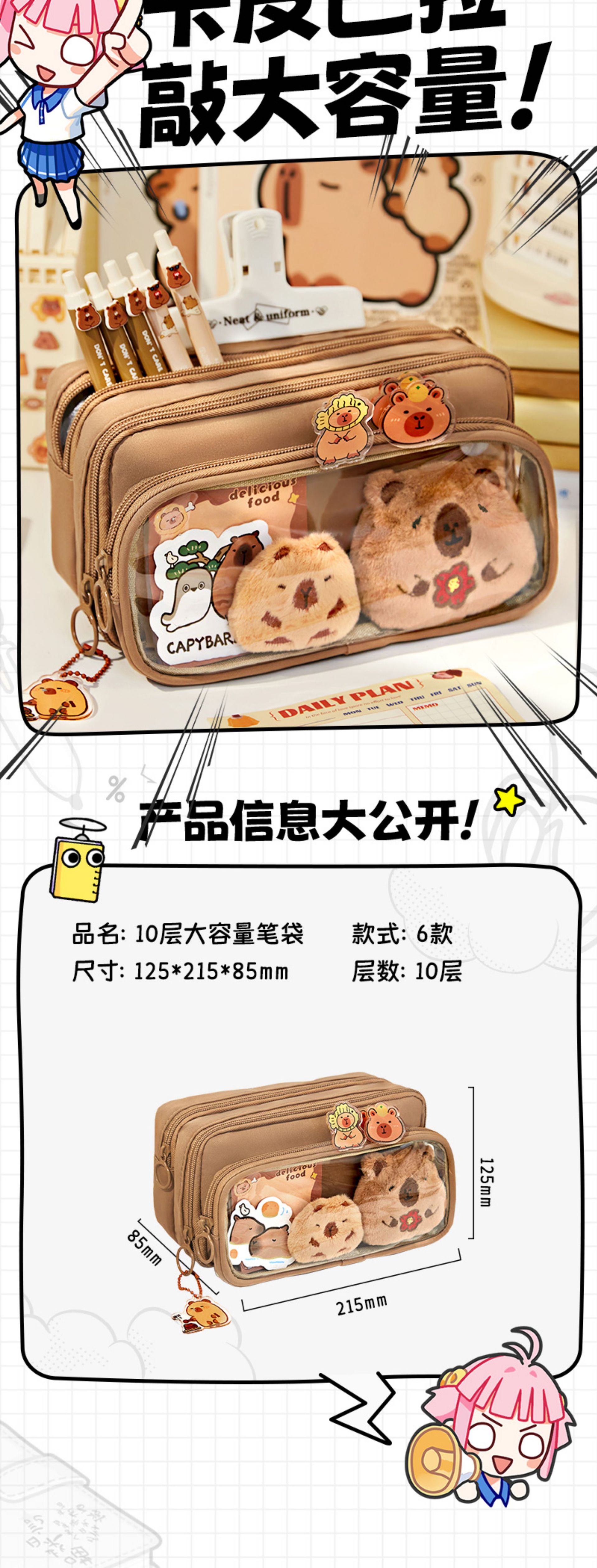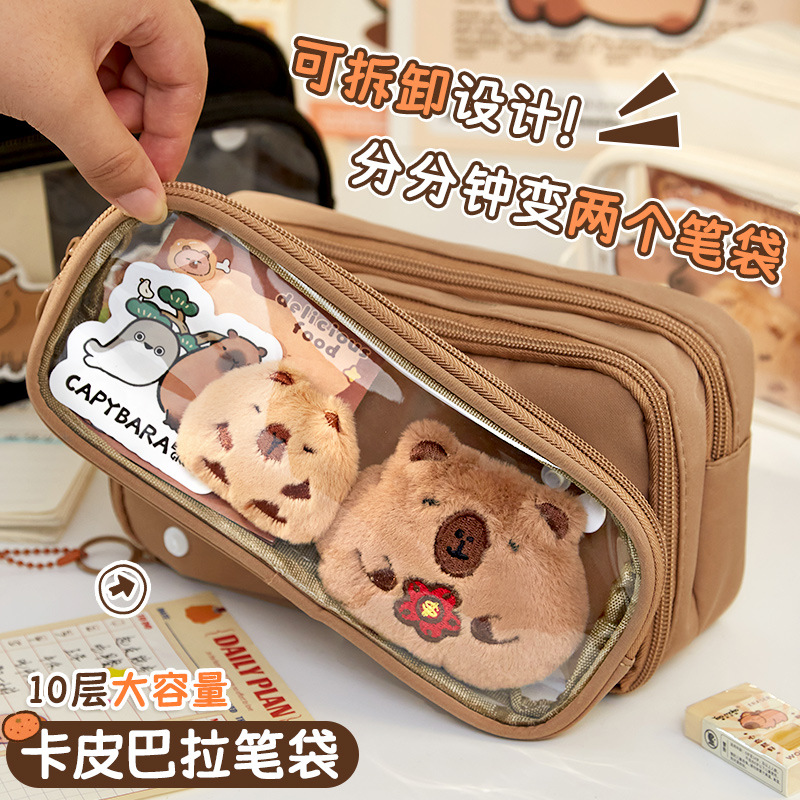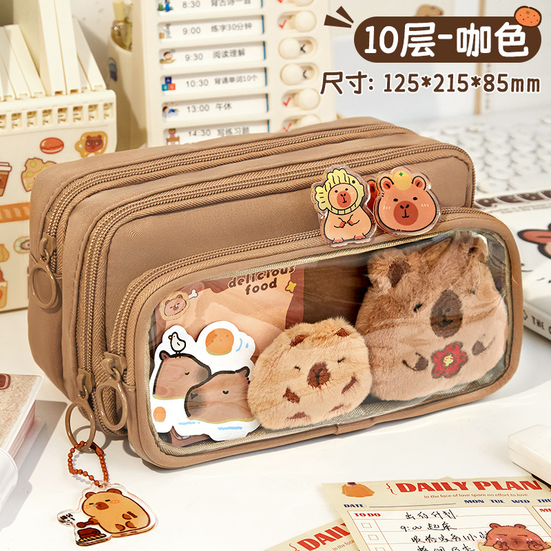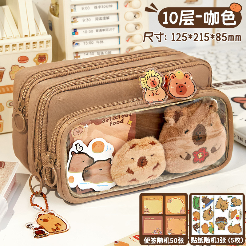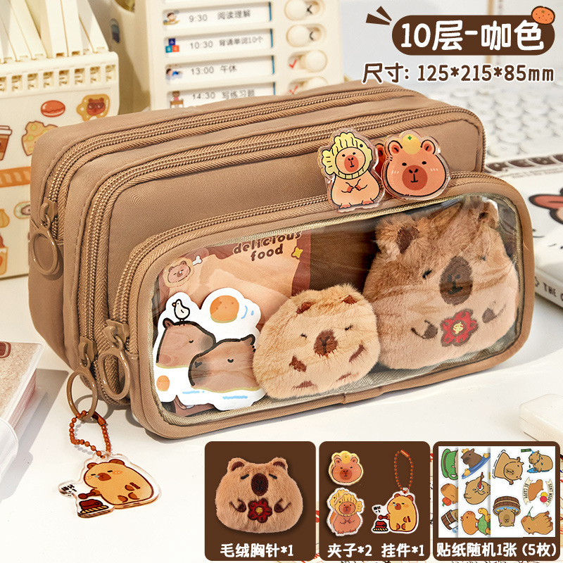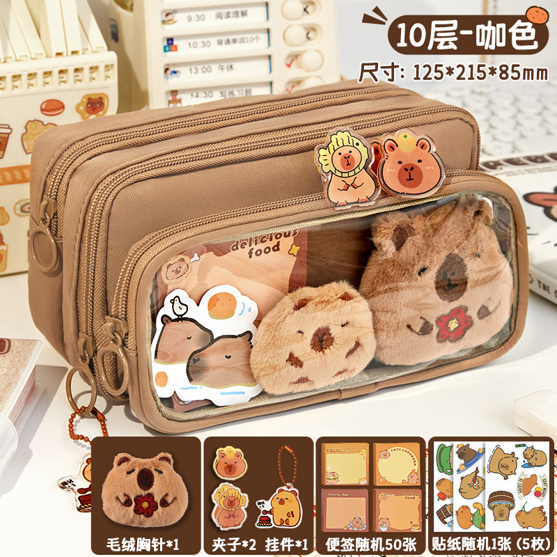 [upgrade 10-layer large capacity] brown pencil case +5 stickers +1 pendant +100 pieces of convenience