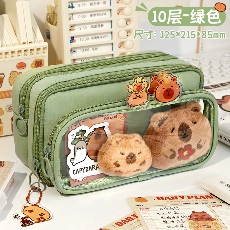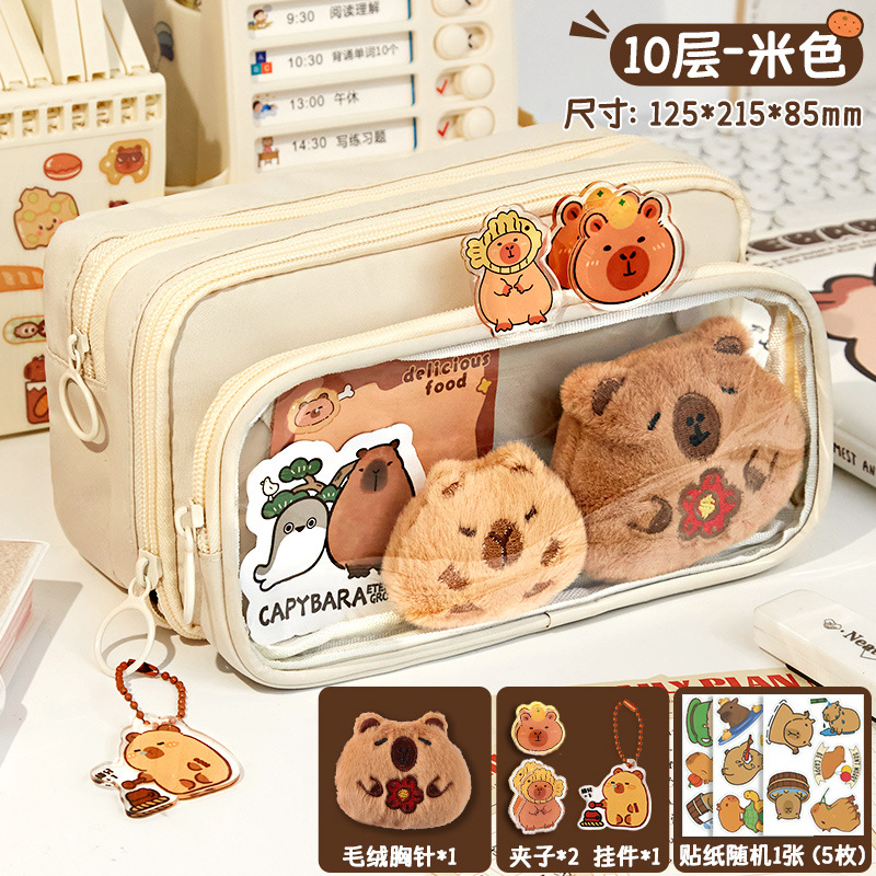 [upgrade 10-layer large capacity] beige pencil case +5 stickers +1 pendant +100 pieces of convenience