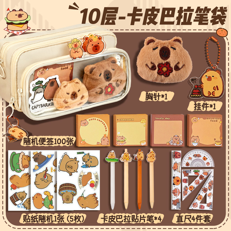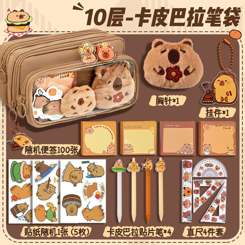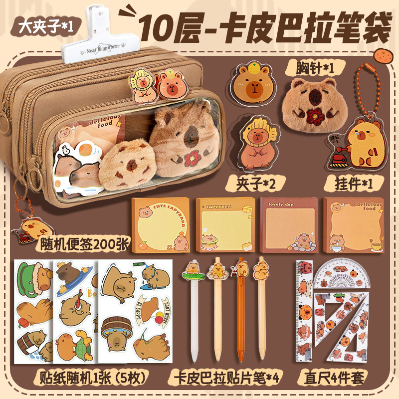 [upgrade 10-layer large capacity] brown pencil case +5 stickers +50 notes