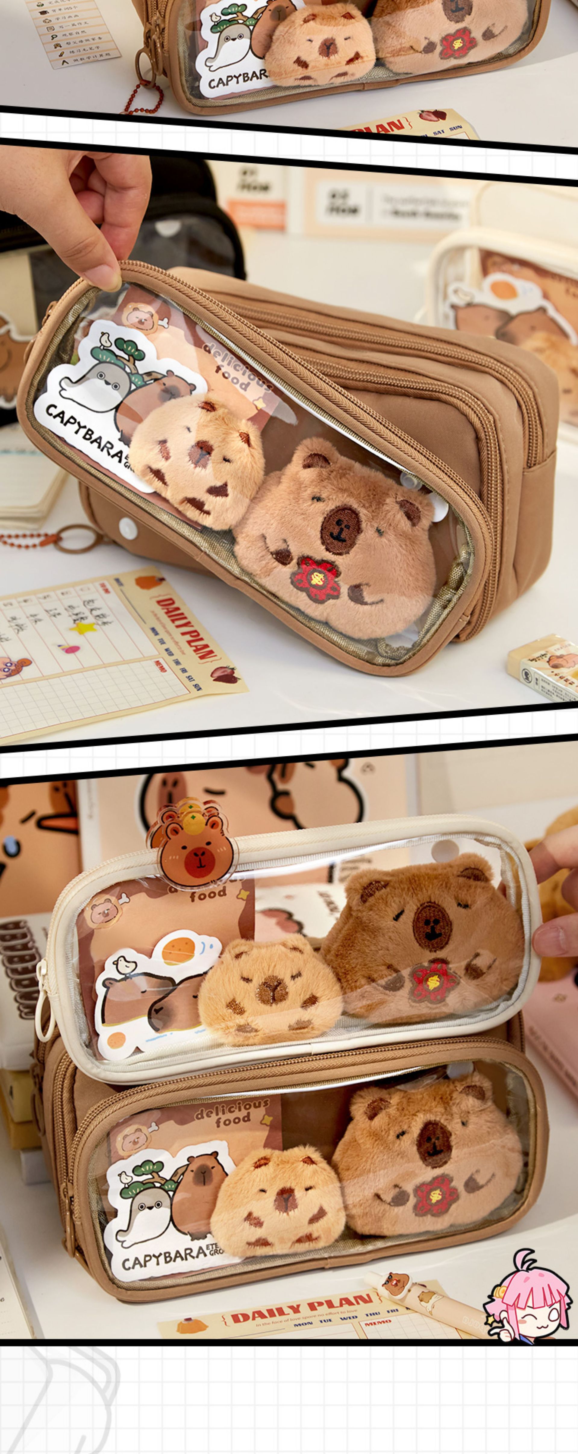[upgrade 10-layer large capacity] beige pencil case +5 stickers +2 clips +1 pendant +1 large
