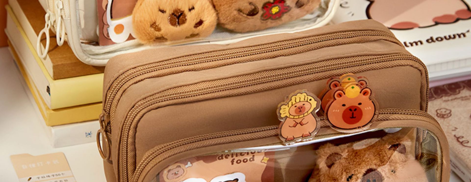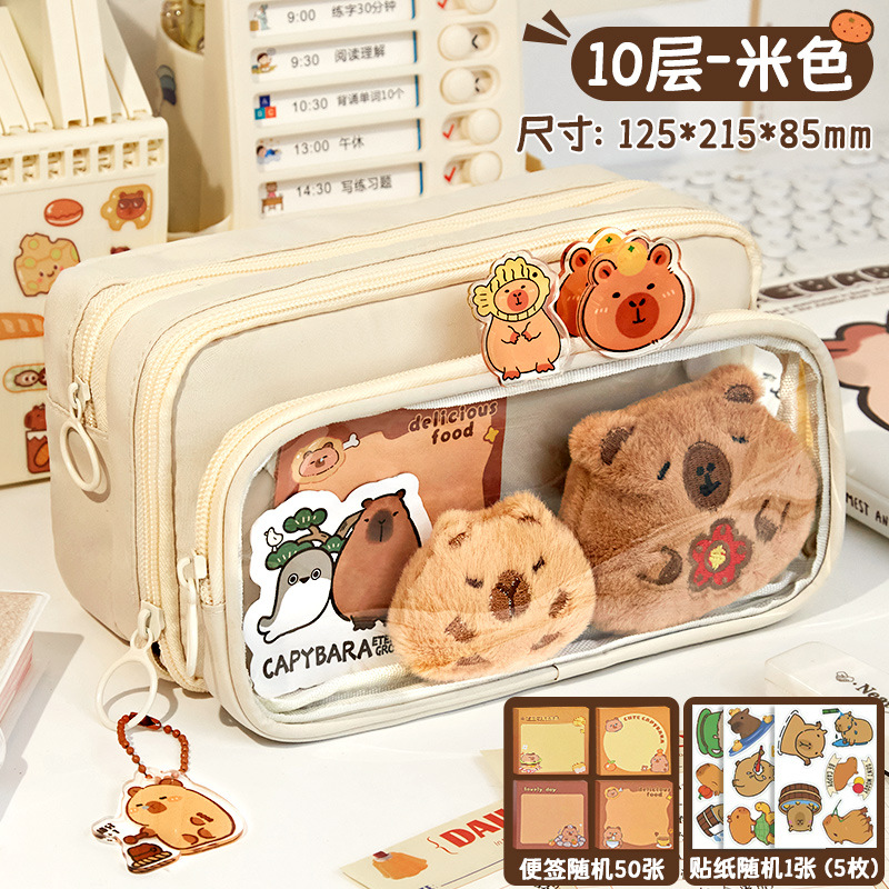 [upgrade 10-layer large capacity] beige pencil case +5 stickers +50 notes