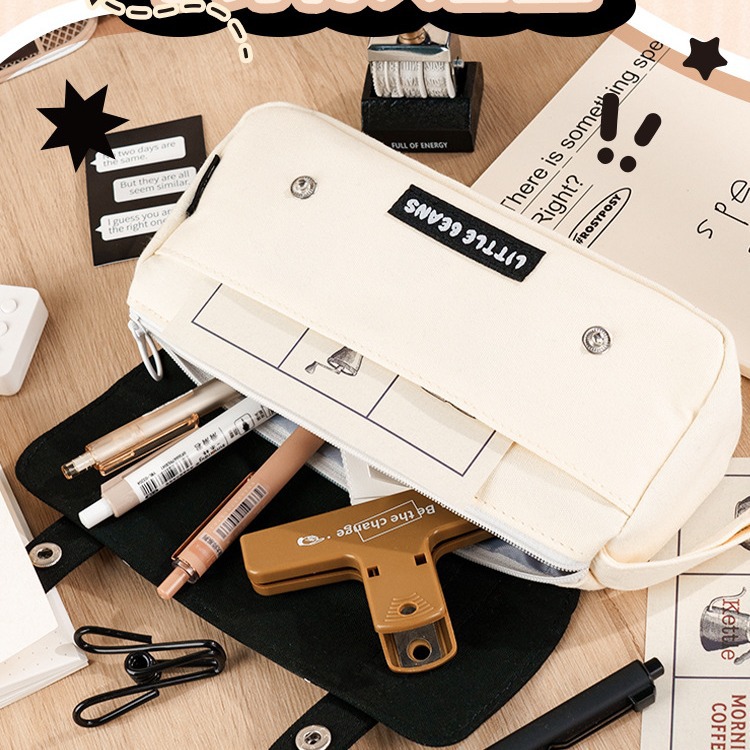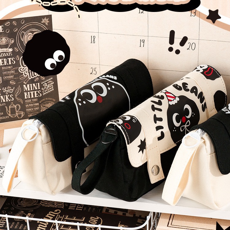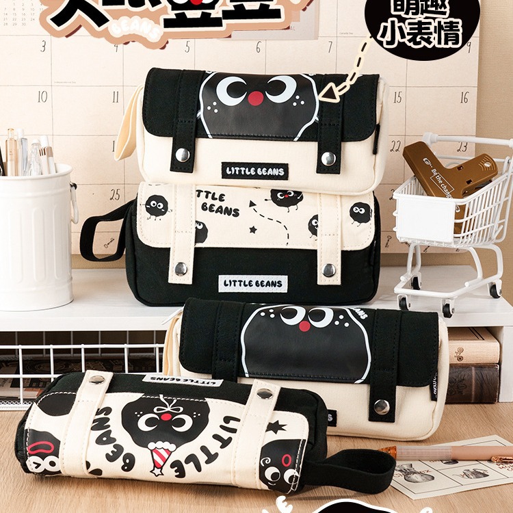[eye-to-eye beanie] hand-carrying double-layer flip pencil case
