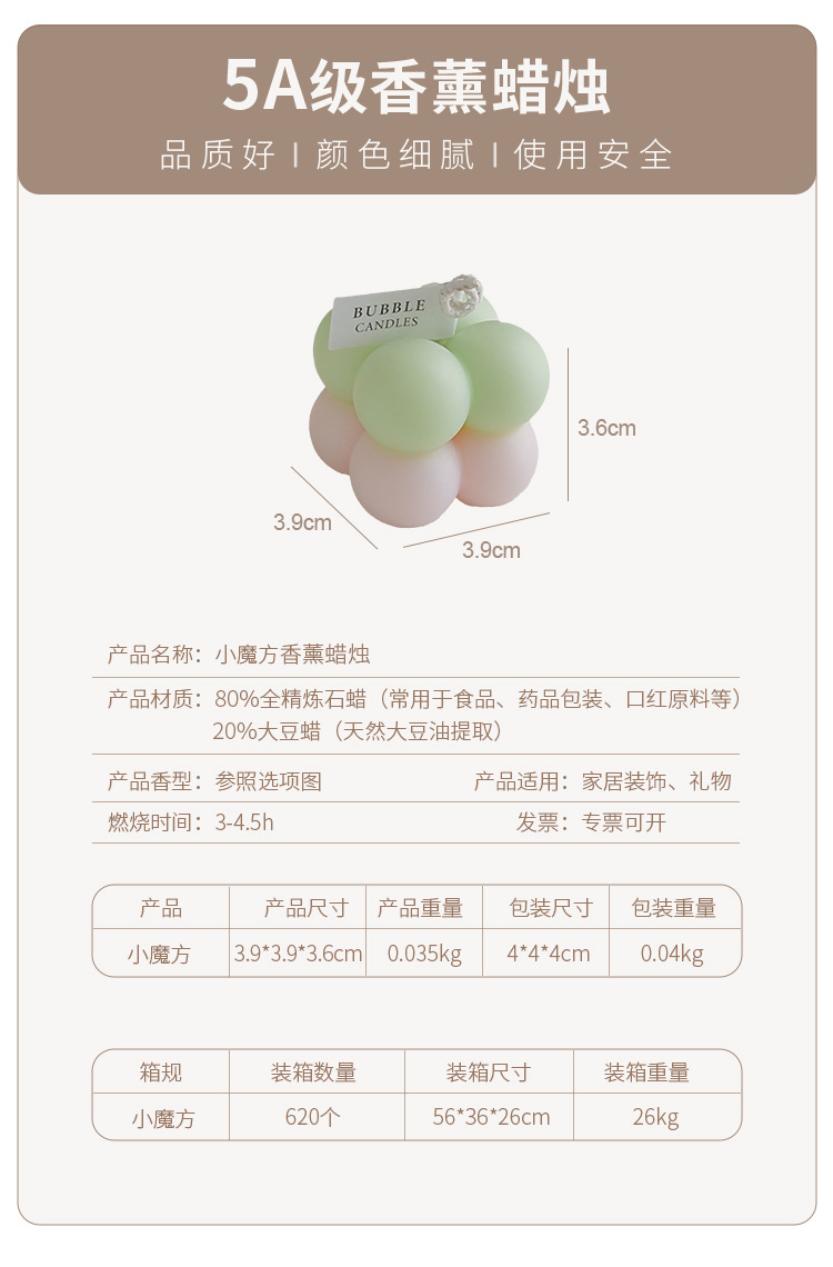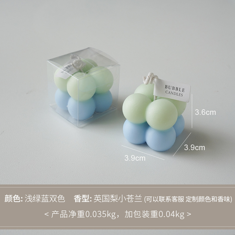 gradient small rubik's cube aromatherapy candle light green and blue double color (fragrance: english pear freesia)