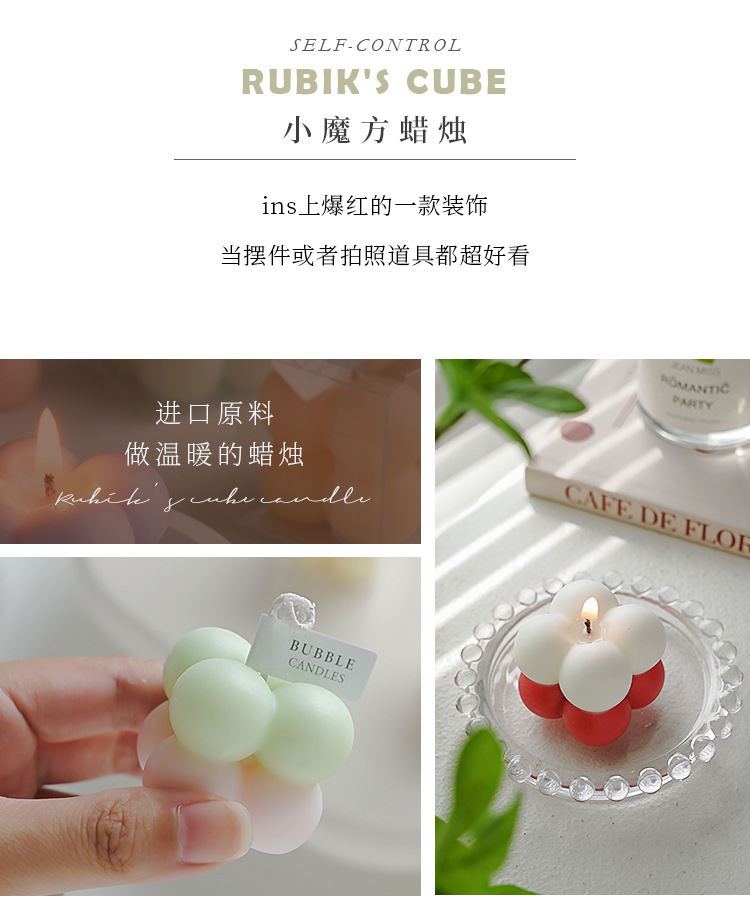 gradient small rubik's cube aromatherapy candle white red double color (fragrance: velvet rose)